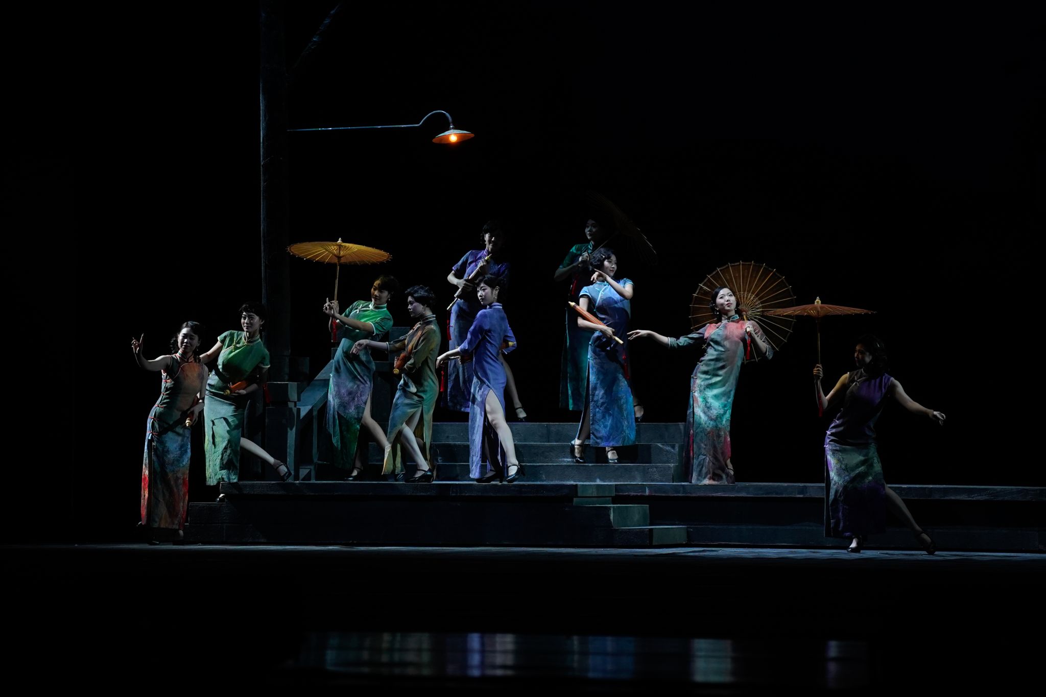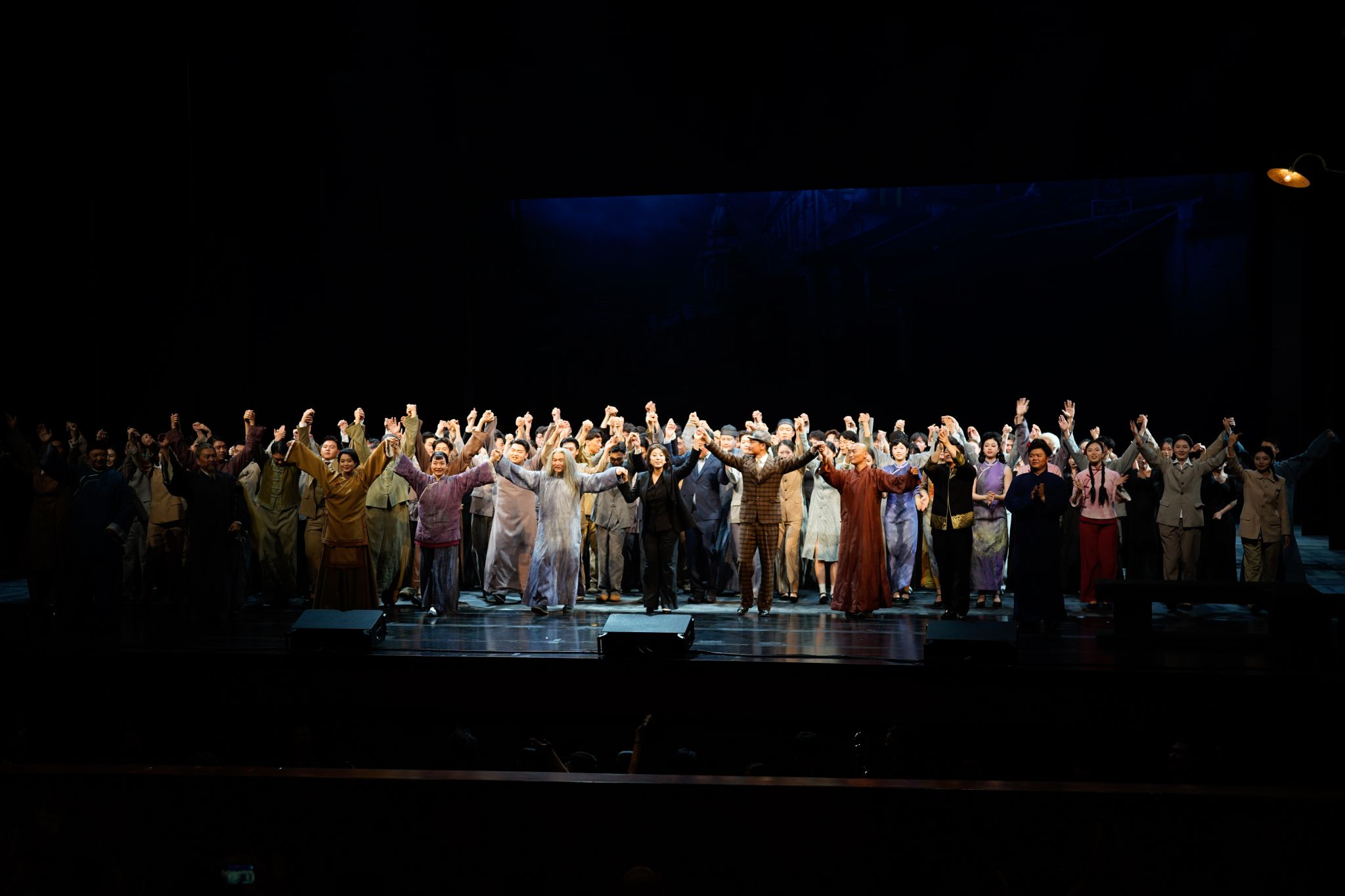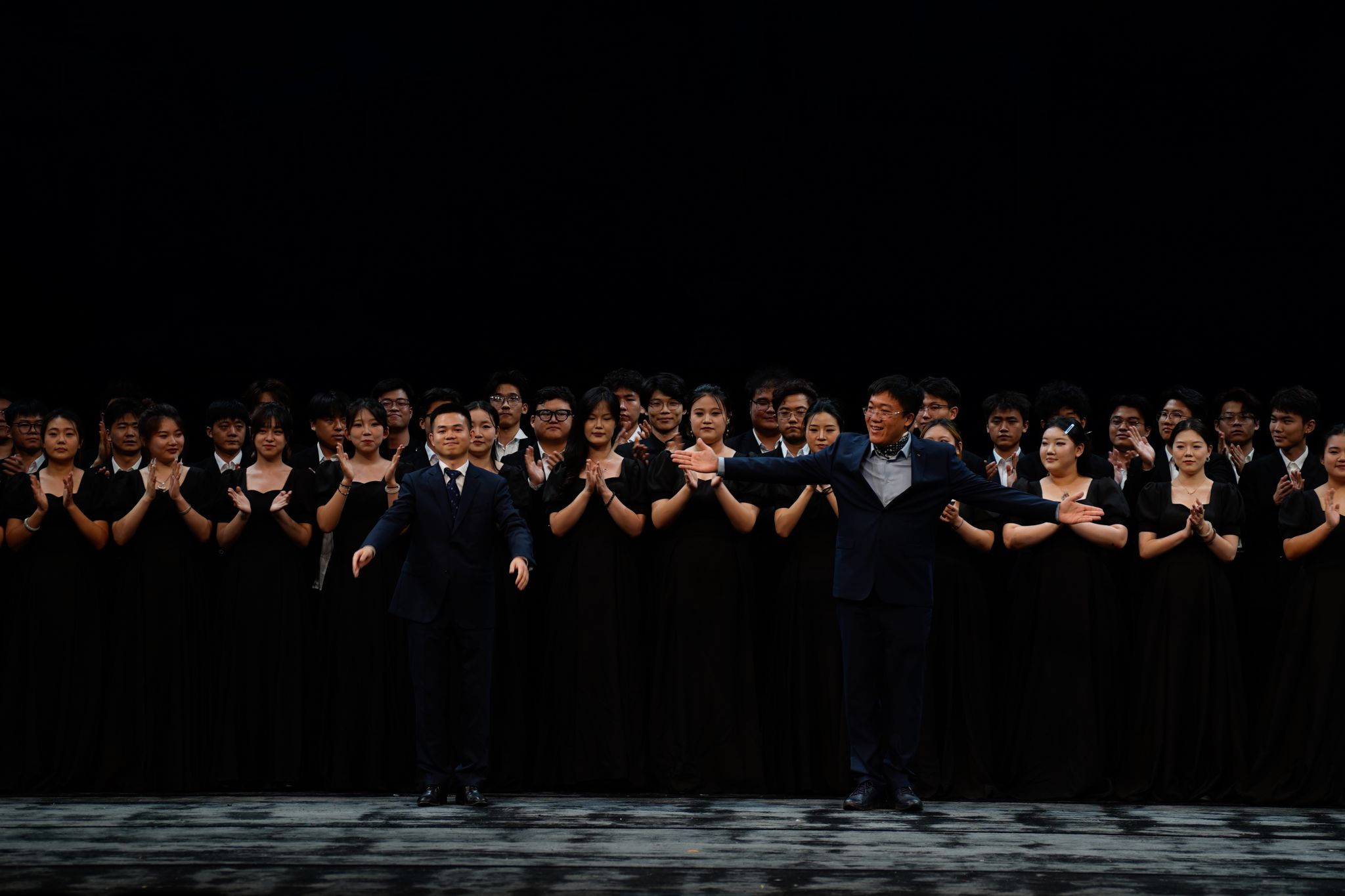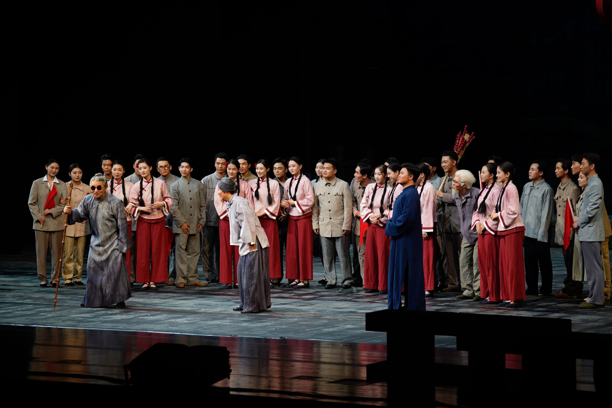 演出现场,歌唱家们以炉火纯青的唱功与丝丝入扣的表演,将阿炳、彩娣等角色的性格特质与情感波澜刻画得入木三分;天津音乐学院青年交响乐团在指挥的精准调度下,奏响雄浑磅礴的乐章,为剧情铺展烘托出恰到好处的氛围;我校天山百灵合唱团清晰传递出演出的语言背景,让剧情表达更显丰盈;我校舞蹈团与戏剧演员亦亮点频现,他们活力迸发、激情洋溢的演绎,为这部浸润着江南韵味的歌剧注入了西北边疆的独特风情,使得整部作品在地域文化的碰撞与交融中绽放出别具一格的光彩。