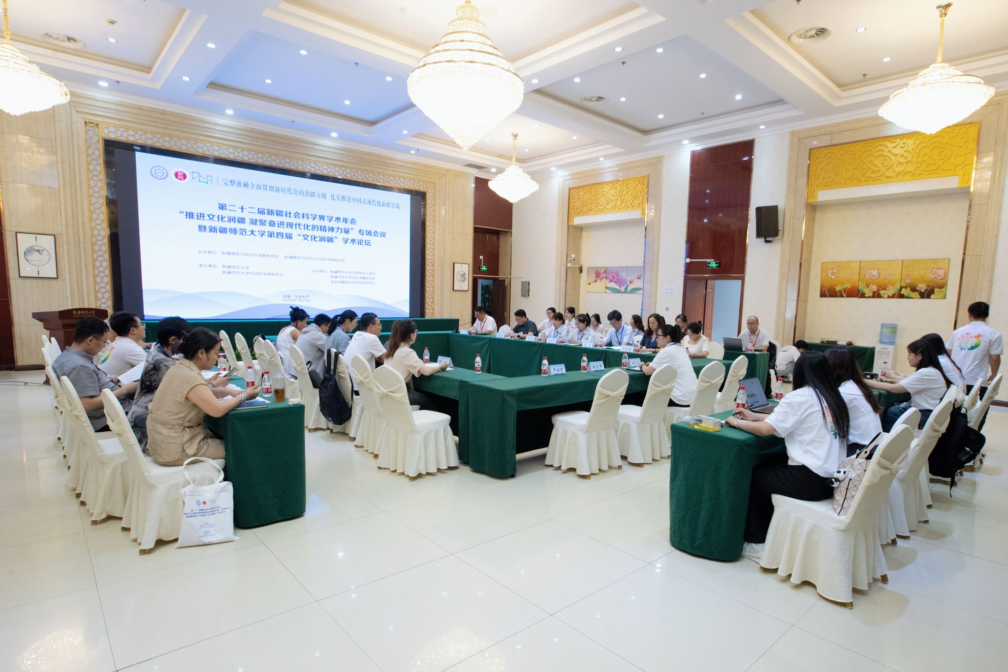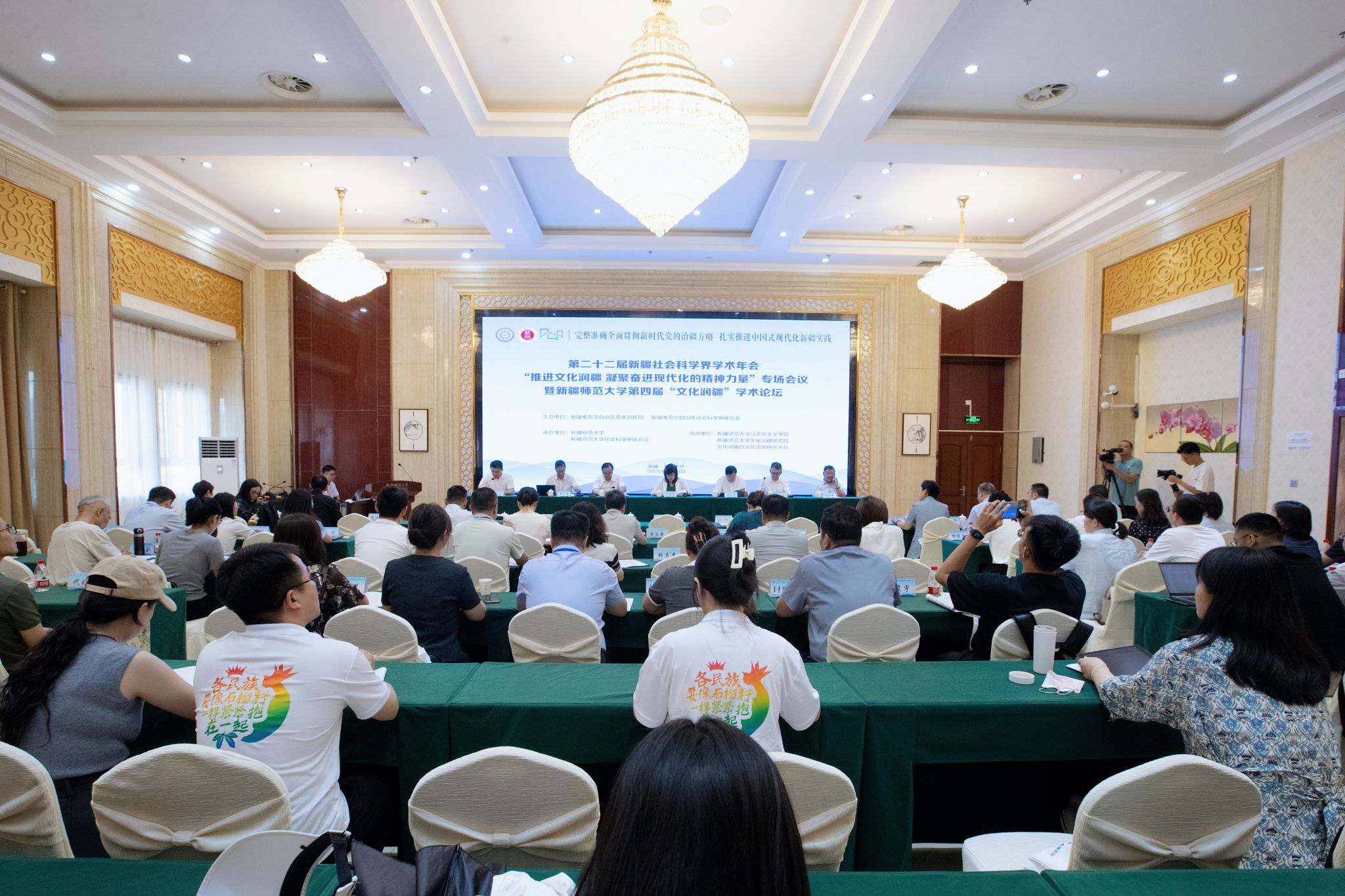 7月21日,由自治区党委宣传部、自治区社会科学界联合会共同主办,我校承办的第二十二届新疆社会科学界学术年会“推进文化润疆 凝聚奋进现代化的精神力量”专场会议暨新疆师范大学第四届“文化润疆”学术论坛在温泉校区学术交流中心多功能厅开幕。校党委副书记、校长艾尼娃尔·艾克木致开幕辞,自治区社科联党组书记、副主席侯菊凤,自治区社科联党组成员、副主席艾比·沙拉木出席会议。校党委常委、副校长刘晨江主持开幕式。