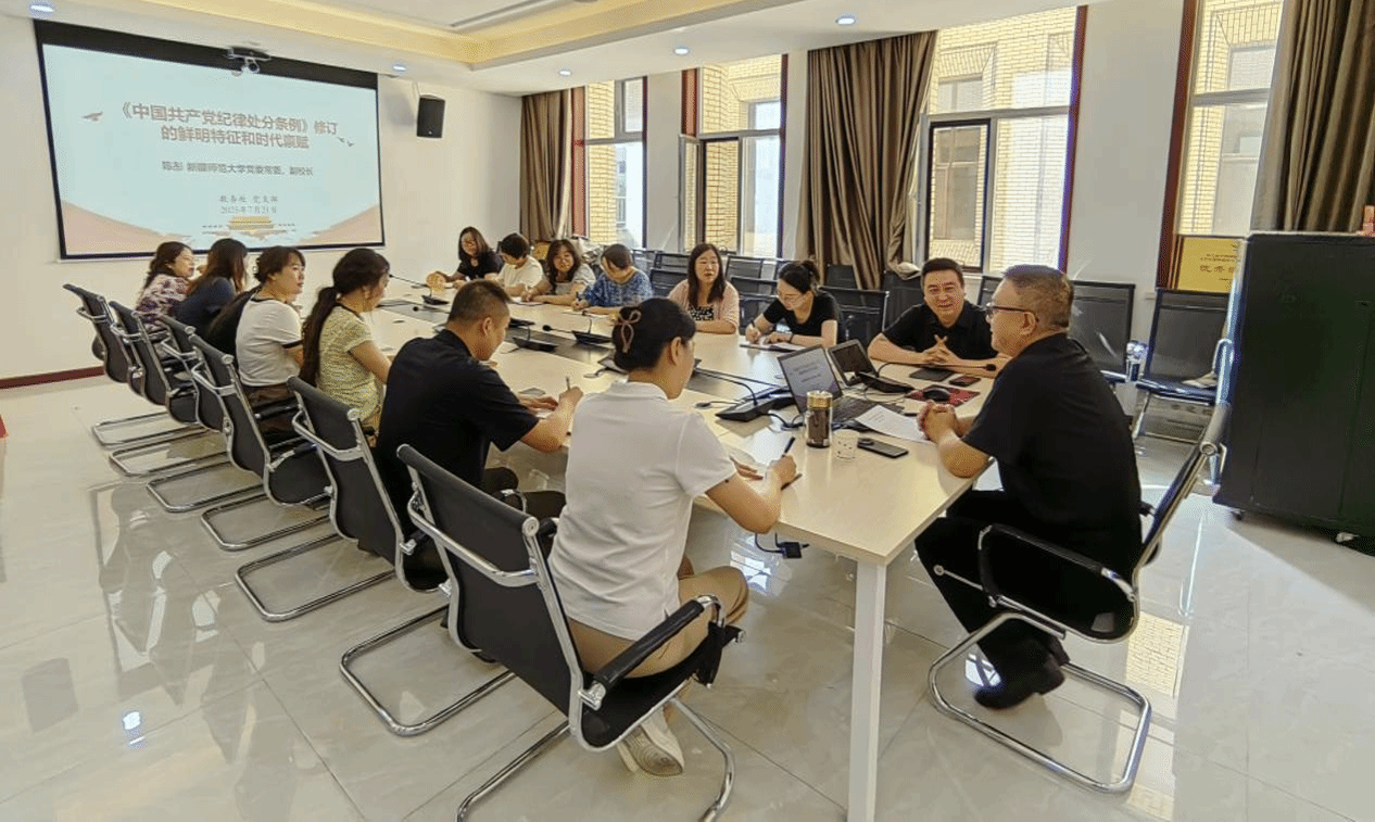 7月21日,校党委常委、副校长陈彤为教务处党员干部讲授专题党课。陈彤对新修订的《中国共产党纪律处分条例》进行了解读,从政治统领性更加凸显、纪律约束系统性显著增强、执纪标尺精准度全面提升等方面分析了《条例》修订的鲜明特征。他强调,制度规定的生命力和权威性在于执行,党员干部要自觉把学习贯彻《条例》作为重要政治任务,时时对照检视,做到知敬畏、存戒惧、守底线,让铁的纪律真正转化为日常习惯和自觉遵循。