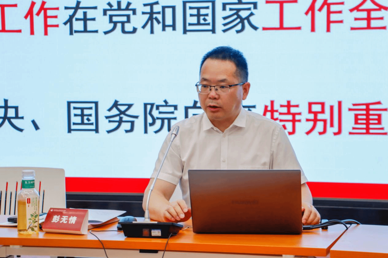 7月2日,校党委常委、统战部部长、马克思主义学院党委书记彭无情为马克思主义学院党员干部讲授专题党课。彭无情从“深刻领会中央民族工作会议精神”的视角进行专题党课授课,教育引导广大党员干部提高政治站位、强化纪律意识,进一步增强做好民族工作的责任感与使命感,在教学与科研工作中,积极传播正确的民族观,推动我国民族工作高质量发展。他强调,马克思主义学院党员干部、教职工要以深入贯彻中央八项规定精神为指引,不断加强党性修养,严守纪律规矩,以更加饱满的热情、更加务实的作风,为学院各项工作发展贡献力量。