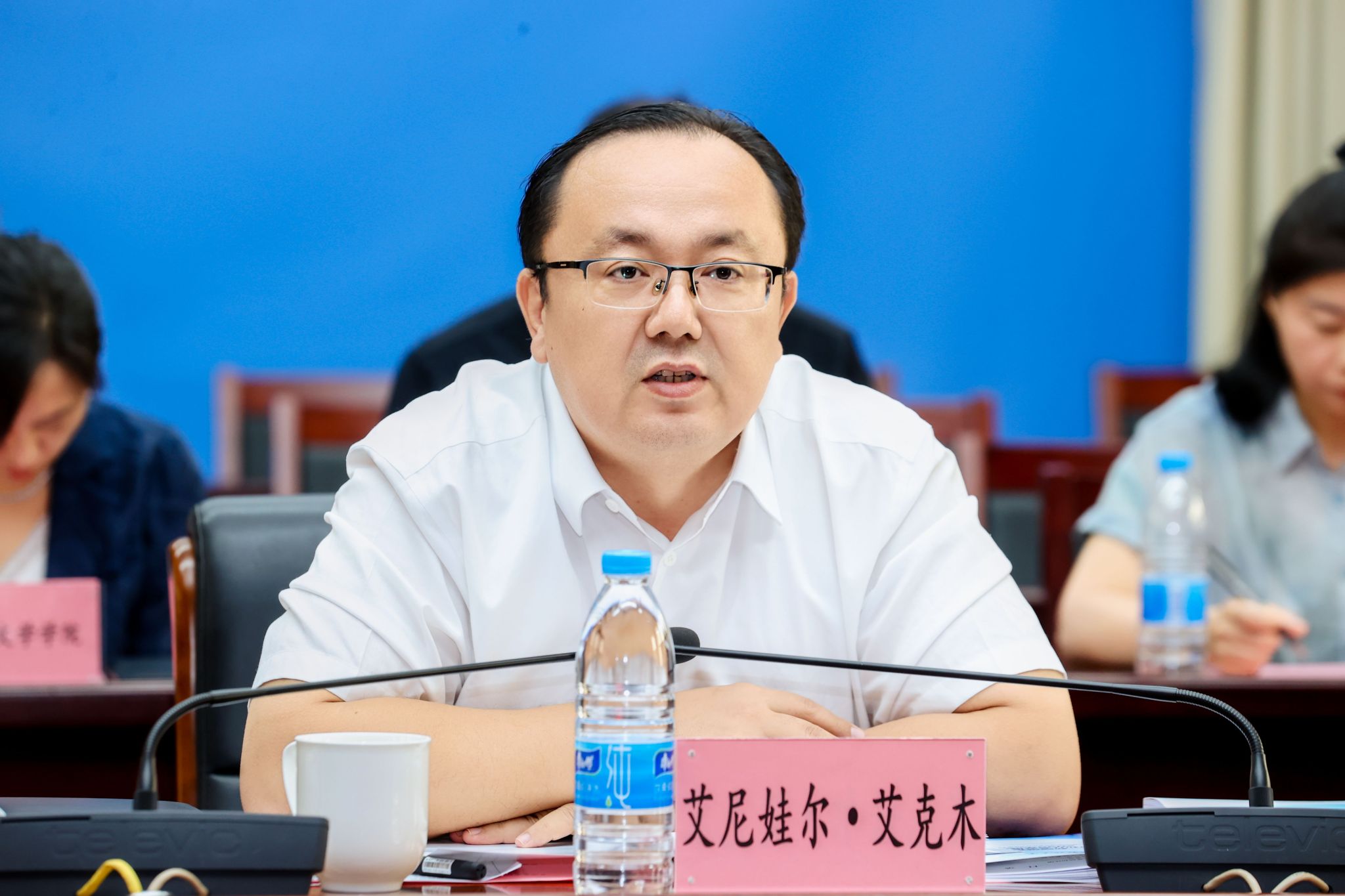 校党委副书记、校长艾尼娃尔·艾克木介绍有关情况