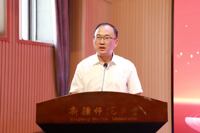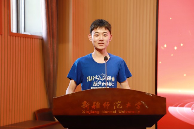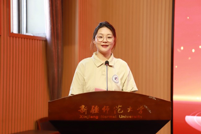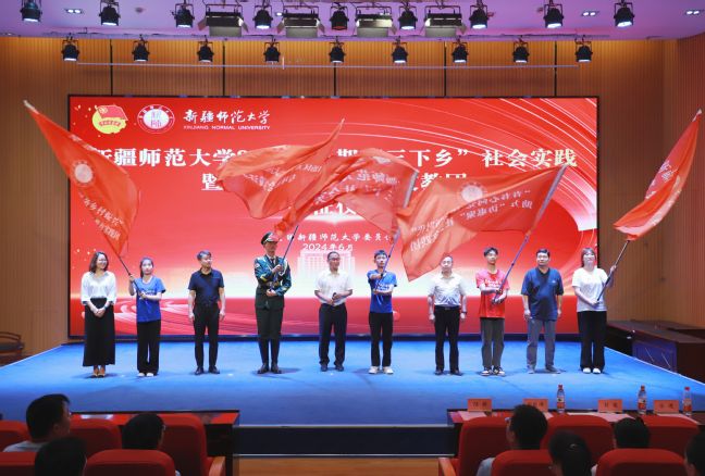 陆娇介绍了我校2024年暑期社会实践工作筹备情况;生命科学学院团委书记苏日耶姆·尼加提代表立项团队指导教师发言;政法学院纪检监察23-5班李柏翔代表校级重点团队成员发言;教育科学学院学生庞蕊代表第十二届研究生支教团发言。随后,刘俊与参会领导共同为出征团队授旗,并宣布出征。
