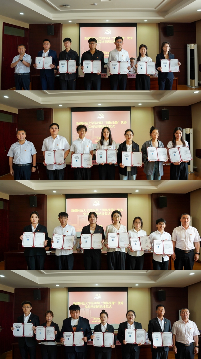 结业仪式上,付东明宣读了《新疆师范大学第四期“胡杨先锋”学生党员培训班优秀学员名单》,胡毅涛为学员颁发了结业证书和荣誉证书。