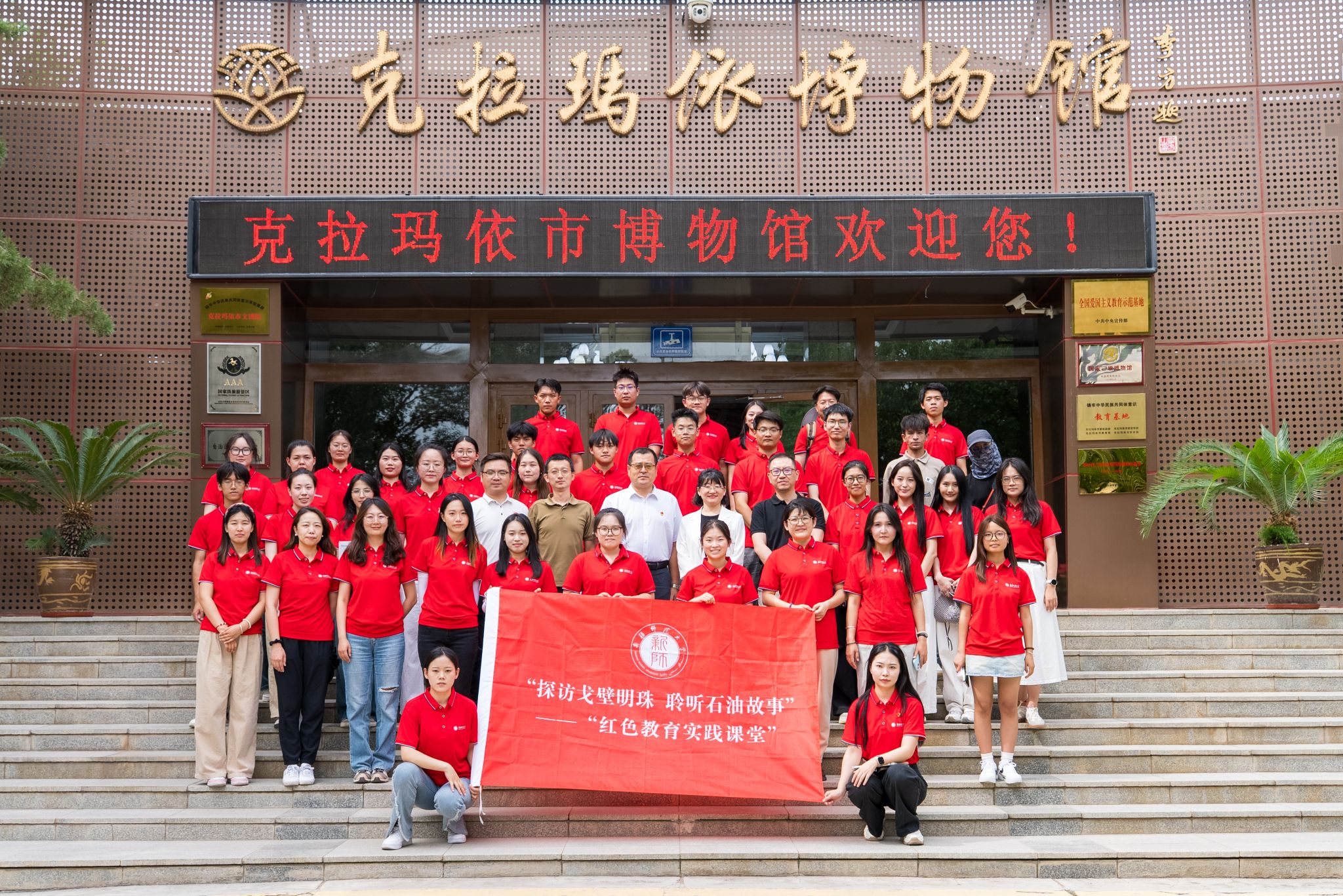 7月5日,活动首站来到克拉玛依博物馆。在讲解员的引导下,师生们通过丰富的文物、图片和影像资料,系统了解了克拉玛依从荒漠戈壁到现代化石油城的奋斗历程,深刻感悟了“爱国奉献、艰苦创业、民族团结、求真务实、追求卓越”的克拉玛依精神。参观结束后,双方共同为“大思政课”实践教学基地揭牌,标志着校馆共建迈出重要一步,今后将充分利用这一平台,把理论学习与社会实践紧密结合,让思政课“活起来”“实起来”。