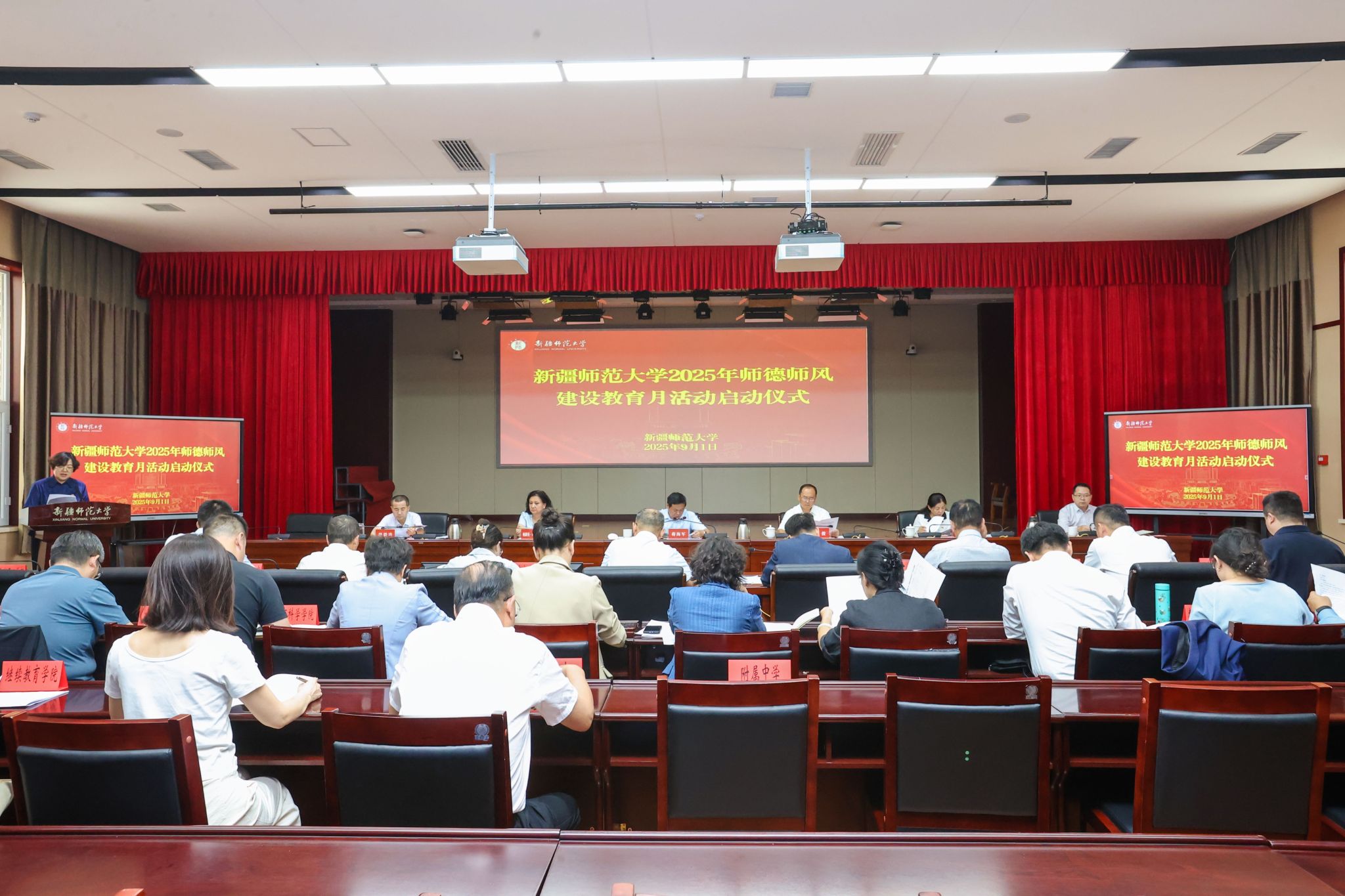第二阶段举行“2025年师德师风建设教育月”启动仪式。学校党委教师工作部部长张海燕就《新疆师范大学关于开展2025年“师德师风建设教育月”活动的通知》作说明。根据安排,今年的活动主题为“以教育家精神铸魂强师,谱写教育强国建设华章”,活动内容包括开展师德主题学习、教育实践、观看师德影视作品、举办“尊师重教”主题活动、进行警示教育以及选树宣传先进典型等。通知要求各单位压实责任、强化宣传、注重实效,确保活动有序推进,积极营造崇尚师德、争当模范的良好师风氛围。
