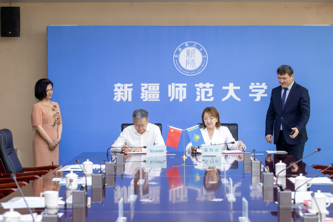会谈后,两校举行了签约仪式。在与会人员的见证下,苏古尔巴耶娃·古尔詹校长与葛国书记签署了校际合作交流协议。