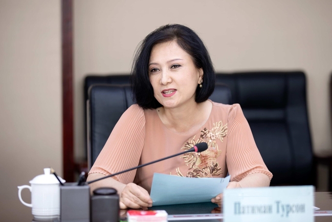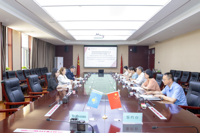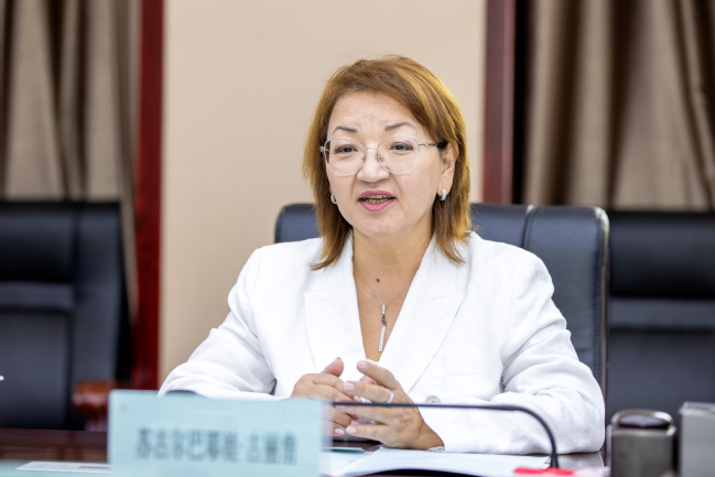 苏古尔巴耶娃·古尔詹对新疆师范大学的热情接待表示感谢,她介绍了南哈萨克斯坦国立师范大学的基本情况。她强调,两校地理位置相近,同为师范院校,今后合作前景广阔。期待在中文教育、联合培养、师生互派等方面开展更多的合作与交流。