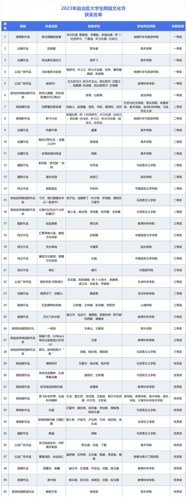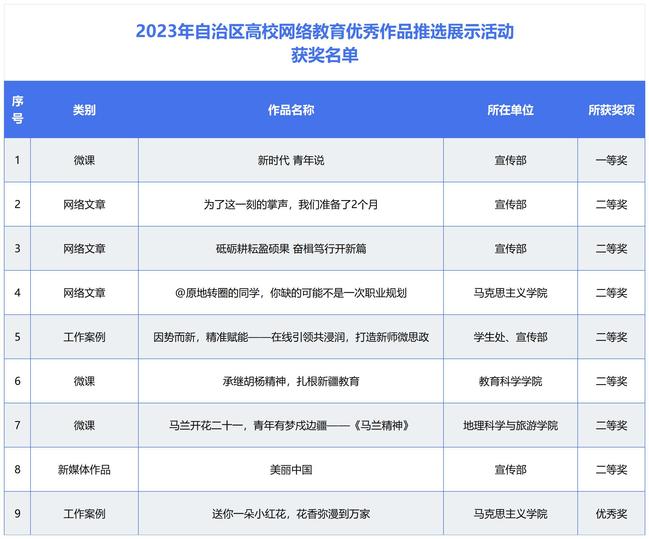 2023年自治区大学生网络文化节获奖名单