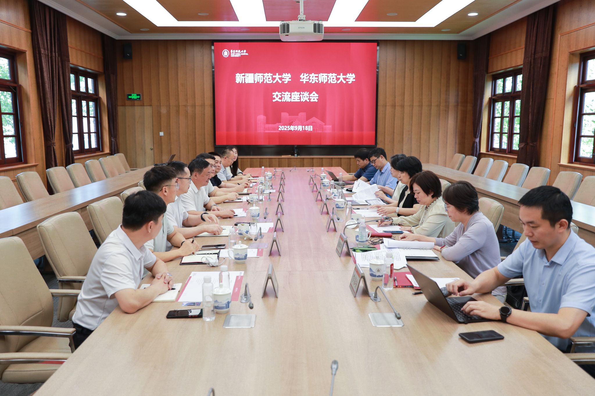 在华东师范大学,蒋海军一行与该校党委书记梅兵,校党委常委、副校长程静,校党委常委、统战部部长张惠虹及相关部门负责人座谈交流。蒋海军感谢华东师范大学长期以来对我校的大力支持,希望两校在人才培养、学科建设和科研创新等方面进一步深化协作。梅兵介绍了华东师范大学当前发展面临的机遇挑战与改革思路,表示愿与我校共同推进有组织科研、学科专业优化调整和中亚研究等领域的交流与合作。