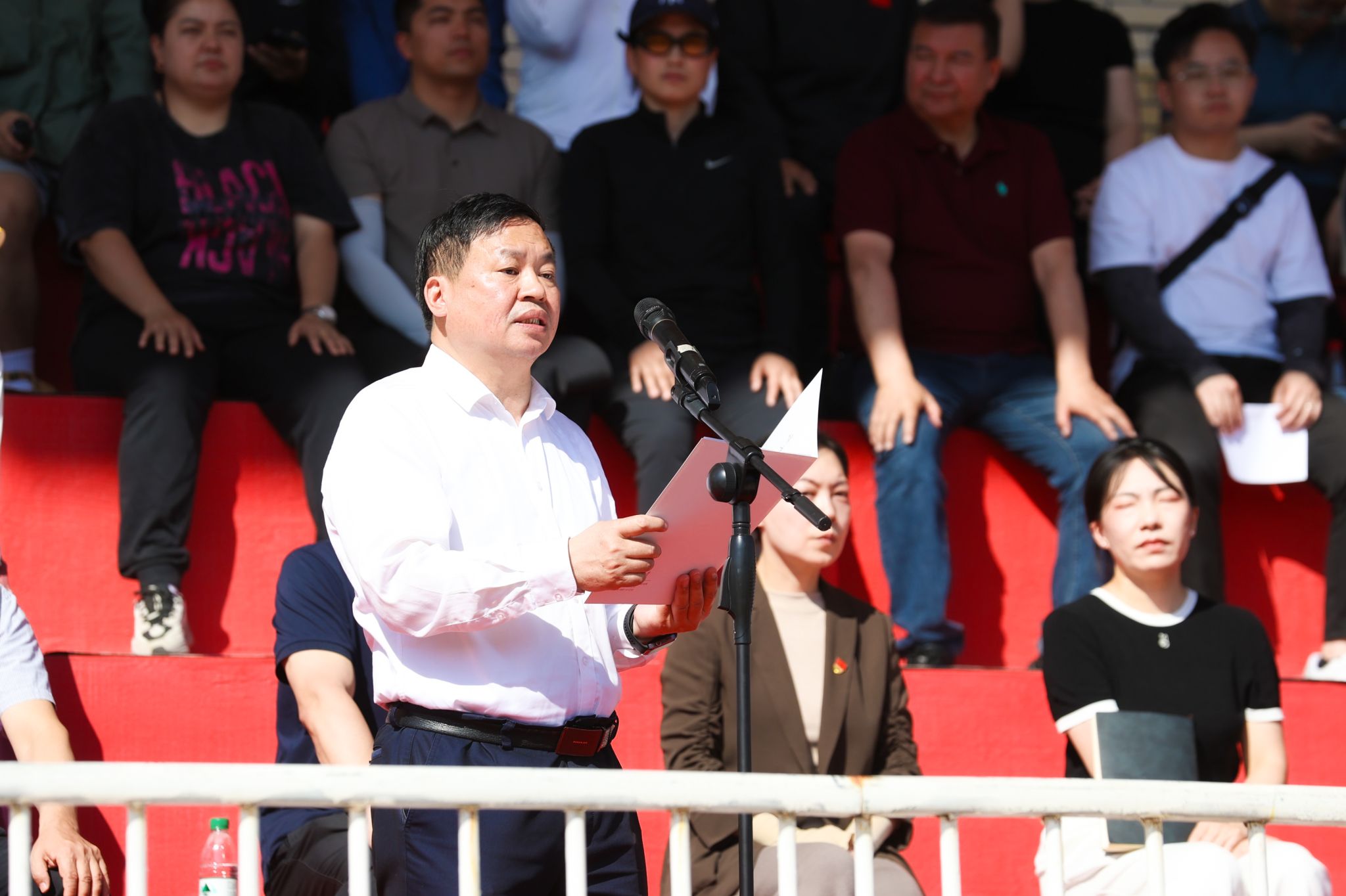 蒋海军强调,运动会是展示青春风采的舞台,是检验体育成果的盛会,更是凝聚团结力量的契机。希望全体运动员以“更快、更高、更强、更团结”的奥林匹克精神为指引,在赛场上奋勇拼搏、挑战自我,将坚韧不拔的意志化作冲刺的动力,把团结协作的精神融入每一次配合,赛出风格、赛出水平。希望全体裁判员严守规则、公正执裁,以专业的态度和严谨的作风,为赛事保驾护航;全体工作人员强化责任担当,以细致入微的服务保障赛事顺利进行。希望全体师生秉持“文明观赛、热情助威”的理念,在加油呐喊中传递尊重与鼓励,让“博学笃行,为人师表” 的校训精神在赛场上熠熠生辉。