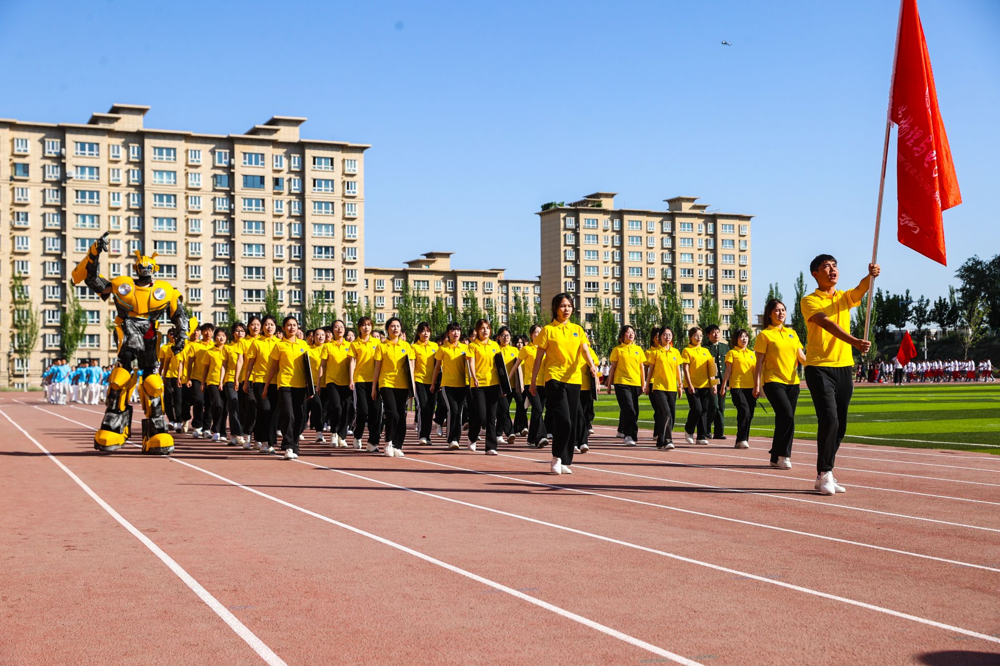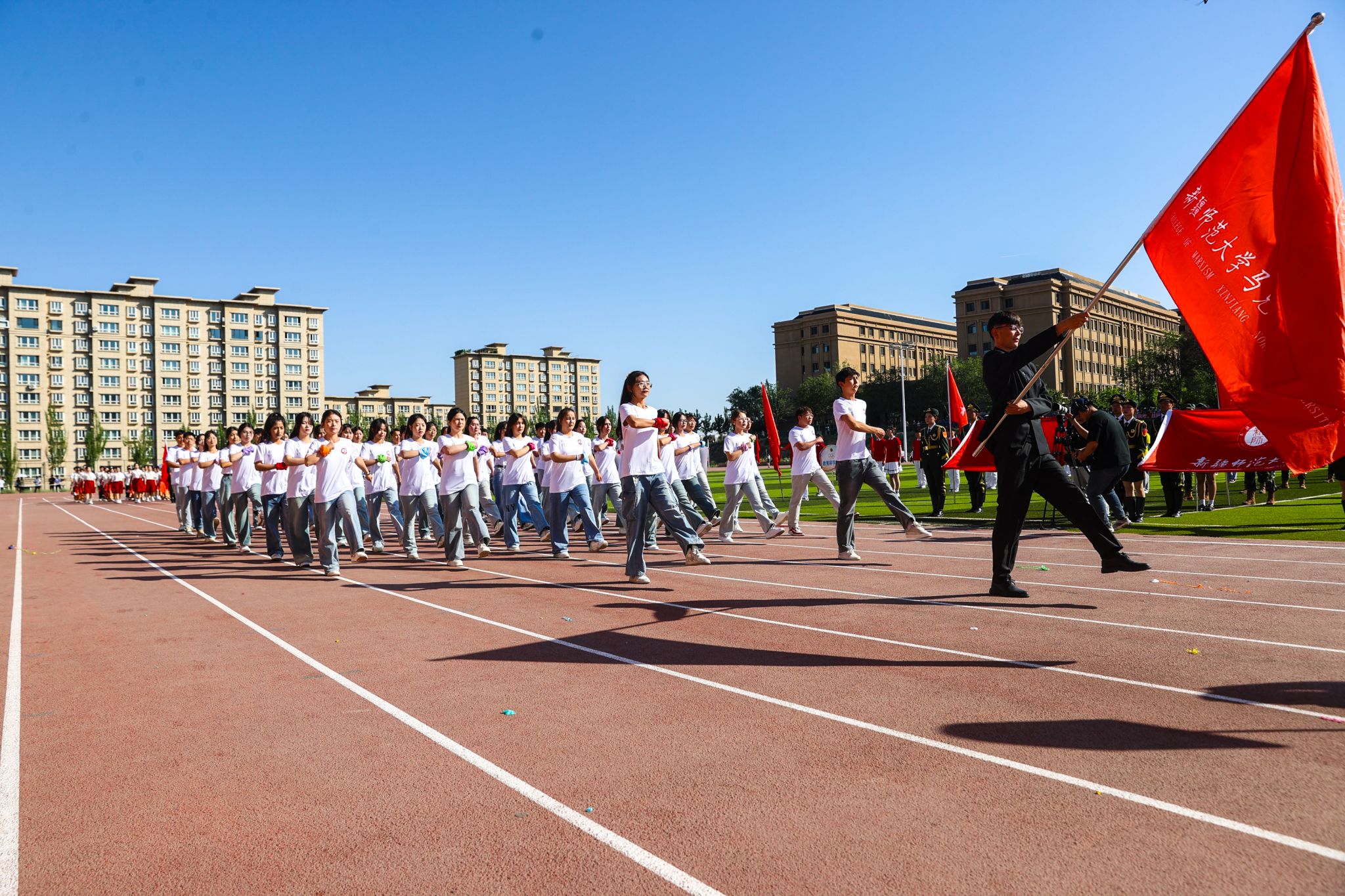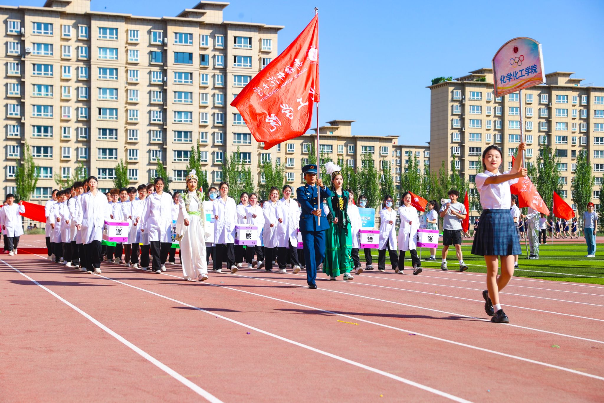 在激昂的音乐声中,国旗方队、退役军人方队、红旗方队、裁判员方队、研究生代表队和各学院代表队身着统一服装、迈着整齐步伐、高喊嘹亮口号通过主席台,接受在场师生的检阅。特色展示环节,各方阵或载歌载舞,或展示标本,“大黄蜂”燃爆全场、“大飞机C919”吸睛夺目,创意连连、精彩无限,展现了青年大学生朝气蓬勃、昂扬向上、奋发有为的精神面貌,赢得了在场师生的阵阵掌声。