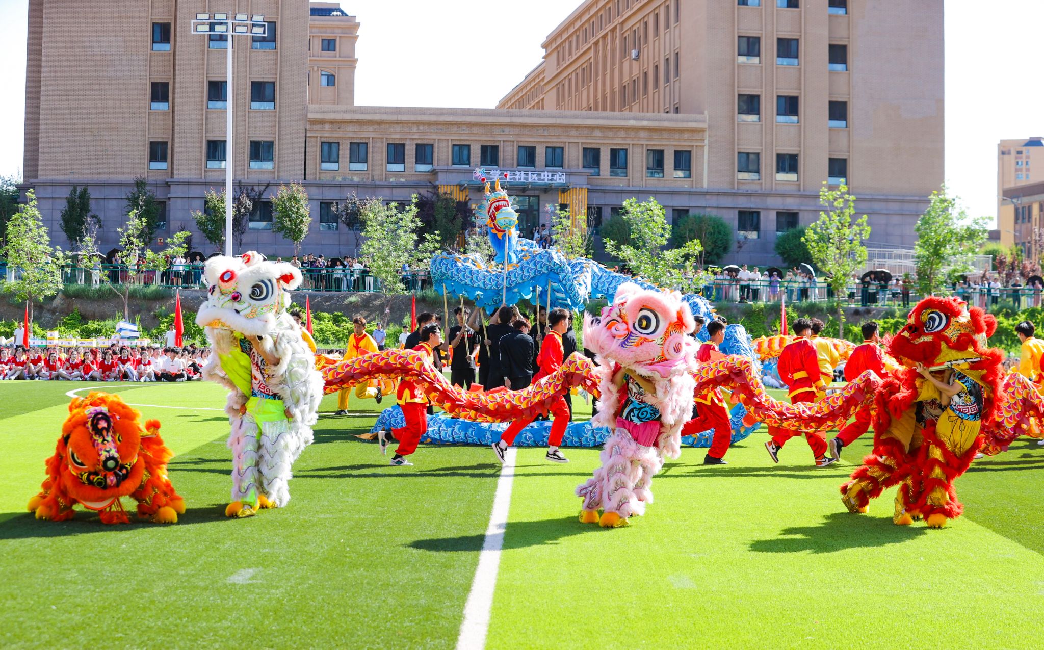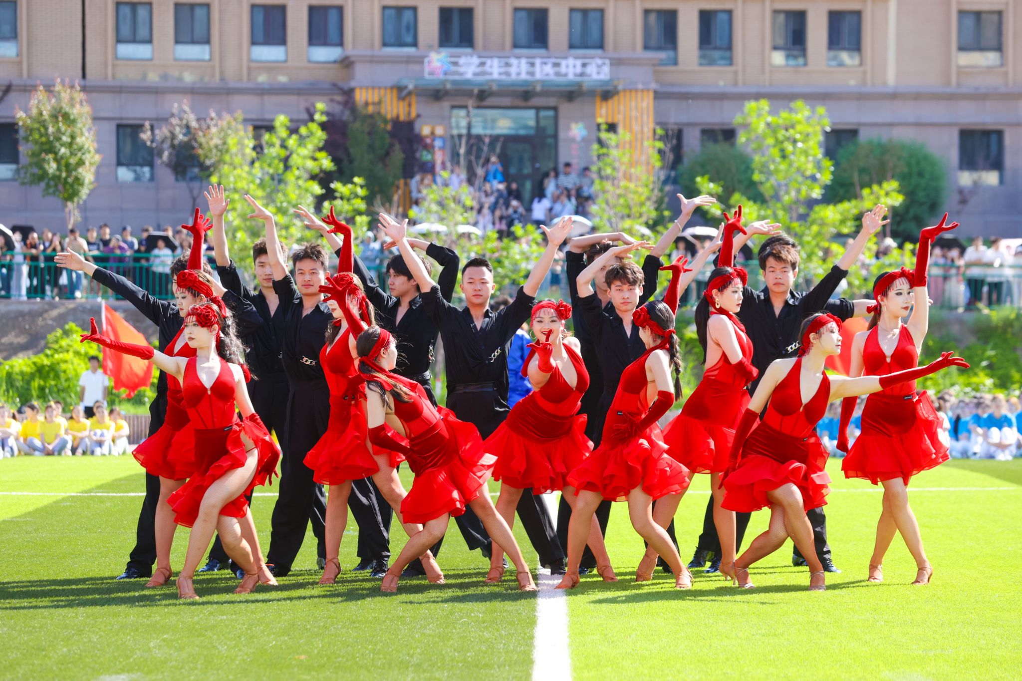 在随后进行的开幕式表演中,来自龙舞社、体育舞蹈训练队菡蔚舞社、武术专项班、健美操队以及我校音乐学院的同学们,分别为在场师生带来了精彩的舞龙舞狮、体育舞蹈、武术太极、竞技健美操及专业舞蹈表演。表演最后,全场千人共同跳起民族健身操,将气氛推向高潮,现场欢呼阵阵、掌声连连。开幕式表演在校歌《放飞天山》的激昂旋律中圆满结束。