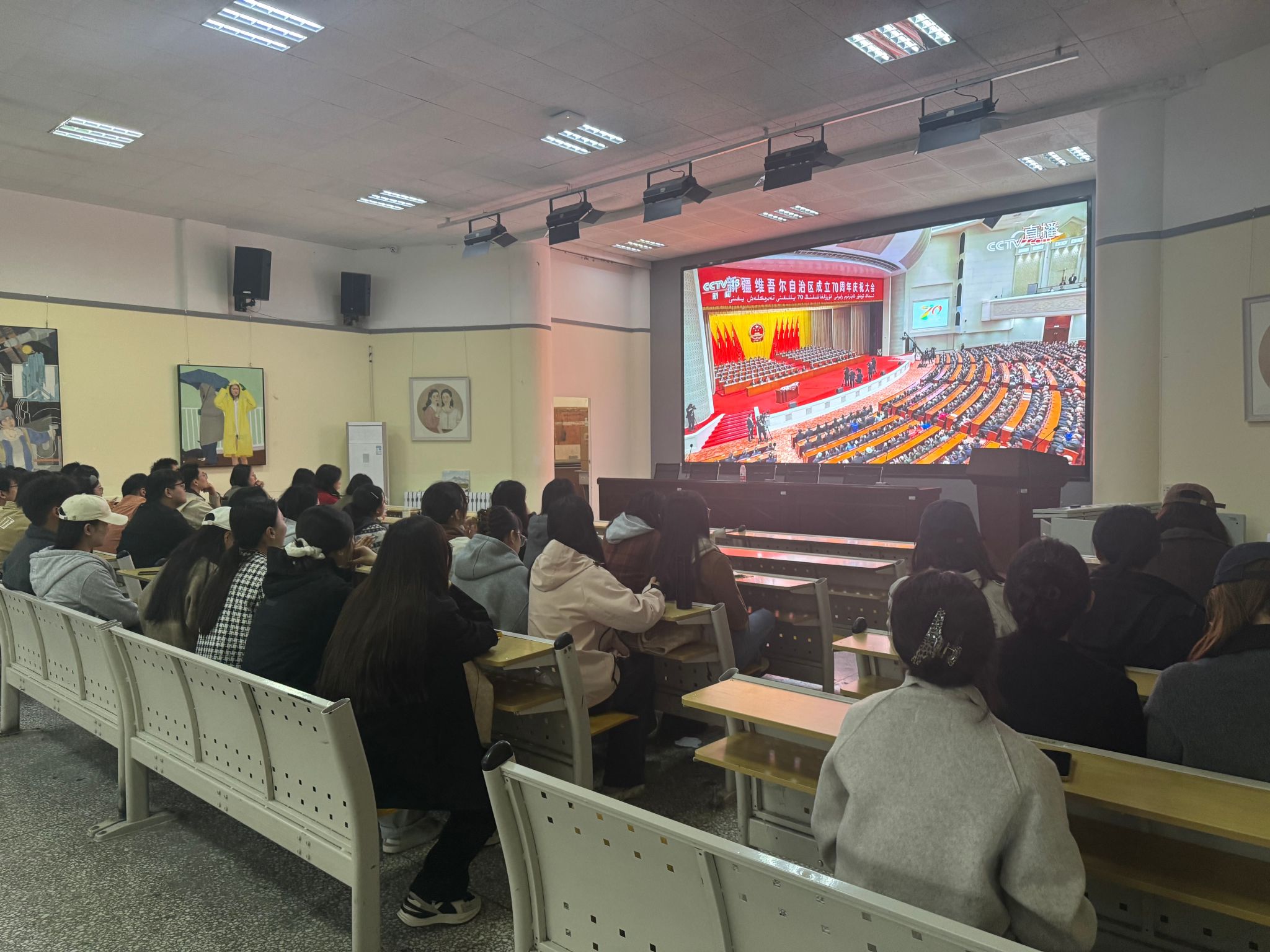 广大师生员工纷纷表示,通过收看大会直播,深刻感受到了新疆维吾尔自治区七十年来取得的辉煌成就,深刻感受到了习近平总书记对新疆工作的亲切关怀,也深刻感受到了自己身上肩负的历史使命和时代责任。今后将以此为动力,把习近平总书记、党中央对新疆各族人民的特殊关怀转化为学习工作的强大动力,以更加饱满的热情和更加严谨的态度投入到今后的学习工作生活中,为推动中国式现代化新疆实践作出新的更大贡献!