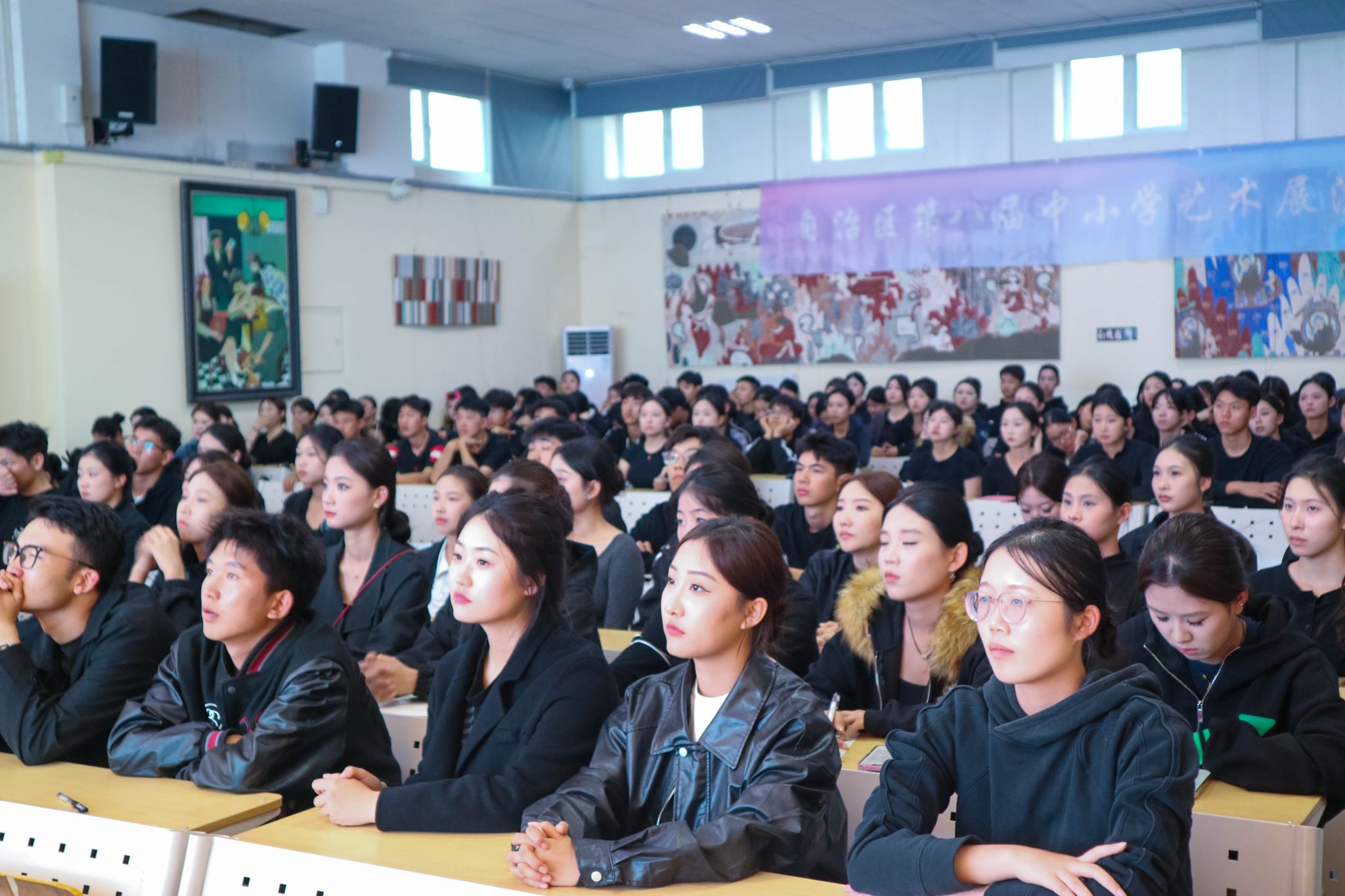 9月26日,我校美术学院举行2025级航空服务艺术与管理专业新生见面会暨入学教育。校党委副书记、校长艾尼娃尔·艾克木参加会议。教务处副处长毋兆鹏、美术学院领导班子成员、广慧金通教育集团新疆区副总经理张海燕和187名新生参加见面会,见面会由我校美术学院党委书记比拉力江·阿不力孜主持。