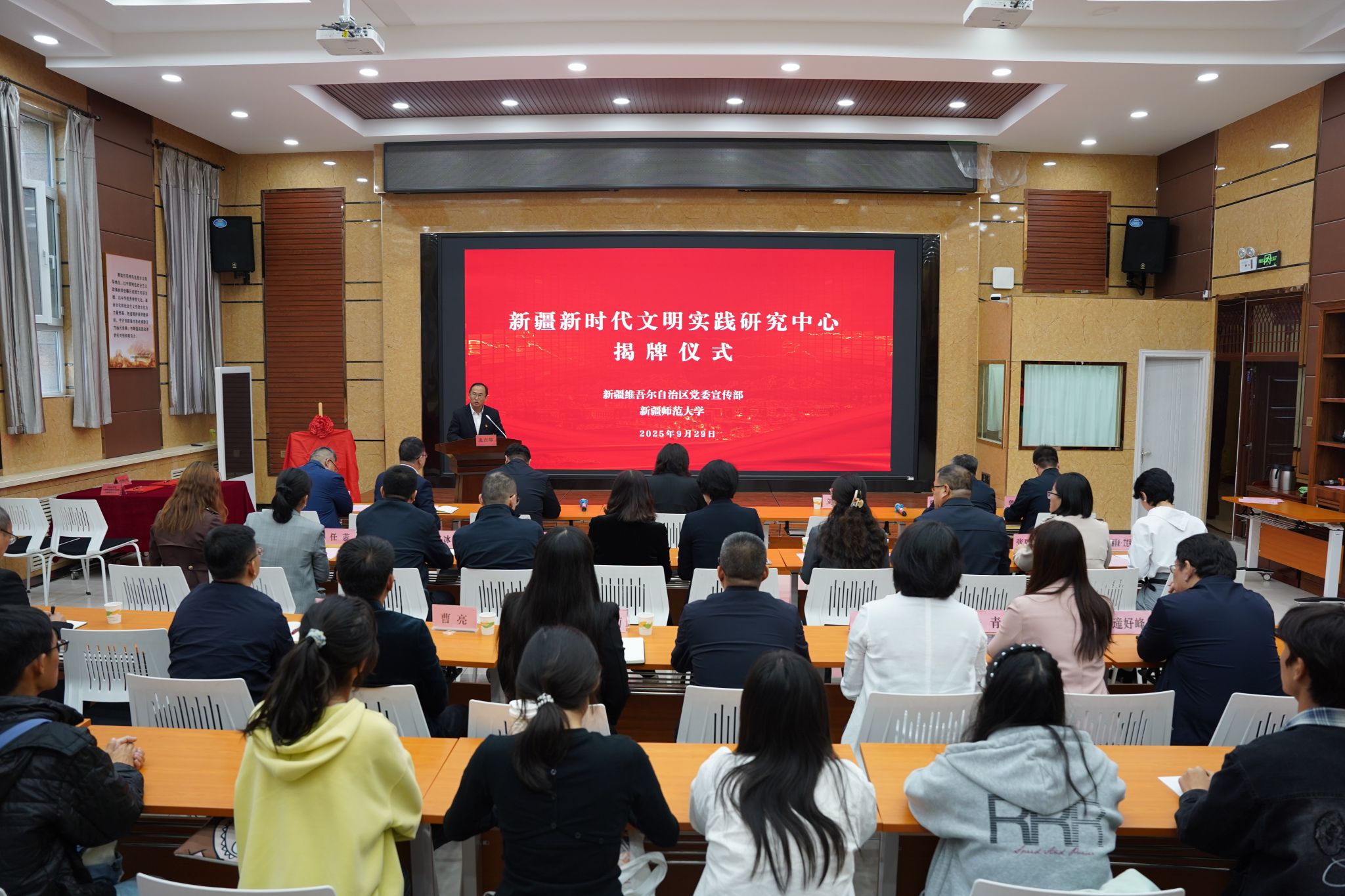 9月29日,新疆新时代文明实践研究中心揭牌仪式在我校温泉校区文汇楼113会议室隆重举行。自治区党委宣传部副部长库兰·赛富汗出席仪式并讲话,校党委副书记、校长艾尼娃尔·艾克木,自治区党委宣传部文明实践处处长向超,校党委常委、统战部部长、马克思主义学院党委书记彭无情,自治区党委宣传部、自治区教育厅、乌鲁木齐市委宣传部、乌鲁木齐市精神文明创建指导中心,经开区、天山区、高新区、沙依巴克区、水磨沟区新时代文明实践研究中心相关负责同志以及我校宣传部、科研处代表、马克思主义学院师生代表80余人参加。仪式由校党委副书记刘俊主持。