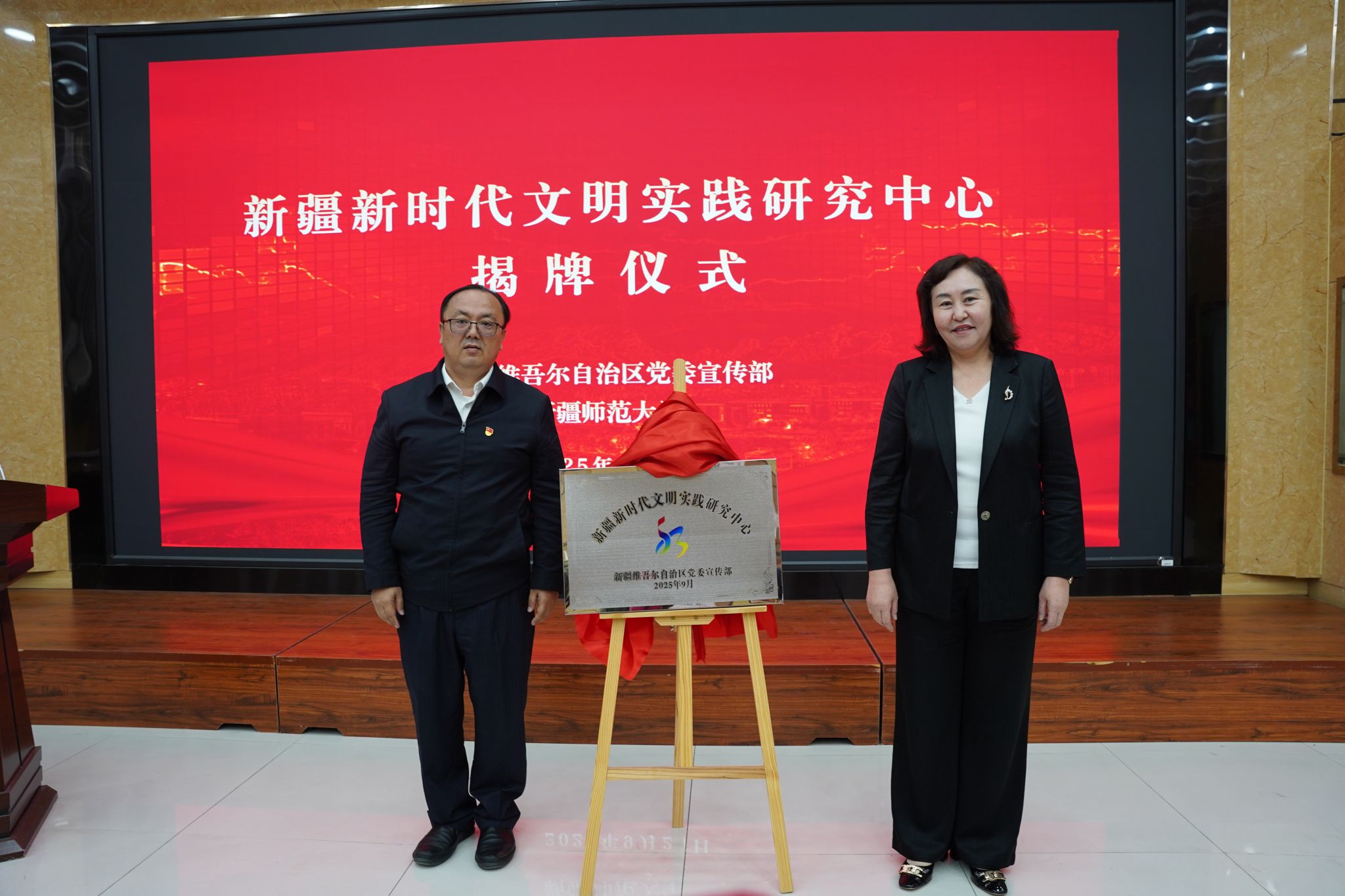 仪式上,向超宣读了《关于同意成立新疆新时代文明实践研究中心的复函》。库兰·赛富汗与艾尼娃尔·艾克木共同为研究中心揭牌。