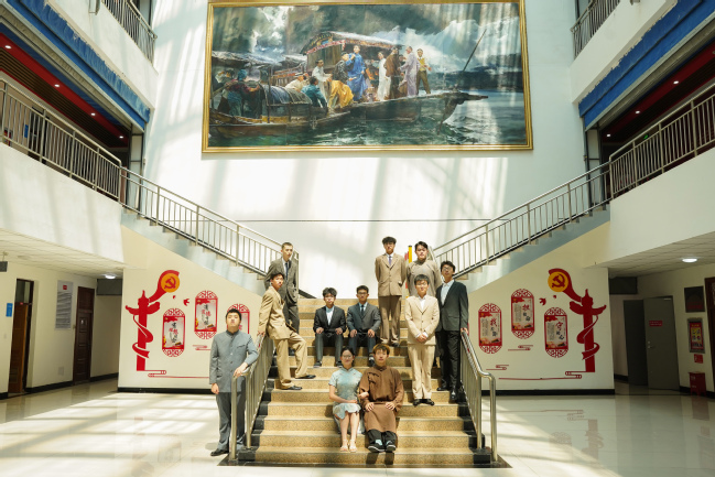 此次沉浸式思政课以情景体验环境为介质,将历史与现实中的教育元素有机结合,使思政课教学内容置于可视可感的历史场景中,通过引导学生在情景体验中了解历史背景与事件本身,帮助学生更好地沉浸在真实课堂中。随着讲解员宣布课程开始,师生们进入到一段扣人心弦的时光之旅。在“闪耀真理的光芒:开天辟地大事变”环节,映入眼帘的是巨幅油画《启航·中共一大》,这幅由我校美术学院师生临摹的油画展现着中共一大代表登上红船的场景,彰显了伟大建党精神。油画下,话剧社的同学们身着长衫,再现党的一大在红船召开时的场景。跌宕起伏的剧情、慷慨激昂的台词、铿锵有力的旁白,让前来上课的同学们仿佛“穿越”时空,重回梦想起航的伟大时刻。