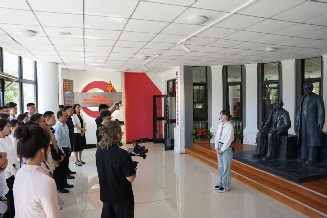 为进一步贯彻落实习近平总书记对学校思政课建设重要指示精神,切实推动高校思想政治理论课改革创新,增强思政课教学的历史感、场景感、真实感、创造感,讲深、讲透、讲活、讲好思政课,6月5日,马克思主义学院举行首场“感悟真理的力量”沉浸式思政课教学展示活动。活动以沉浸式教学的理念,将传统课堂从教室搬进了学校新时代文明实践党史学习教育基地暨马克思主义理论教育基地,通过情景演绎、角色扮演、互动体验、师生共讲等形式,让思政课鲜活起来。校党委副书记刘俊出席活动,胡杨先锋班学员、部分学生代表参与活动。