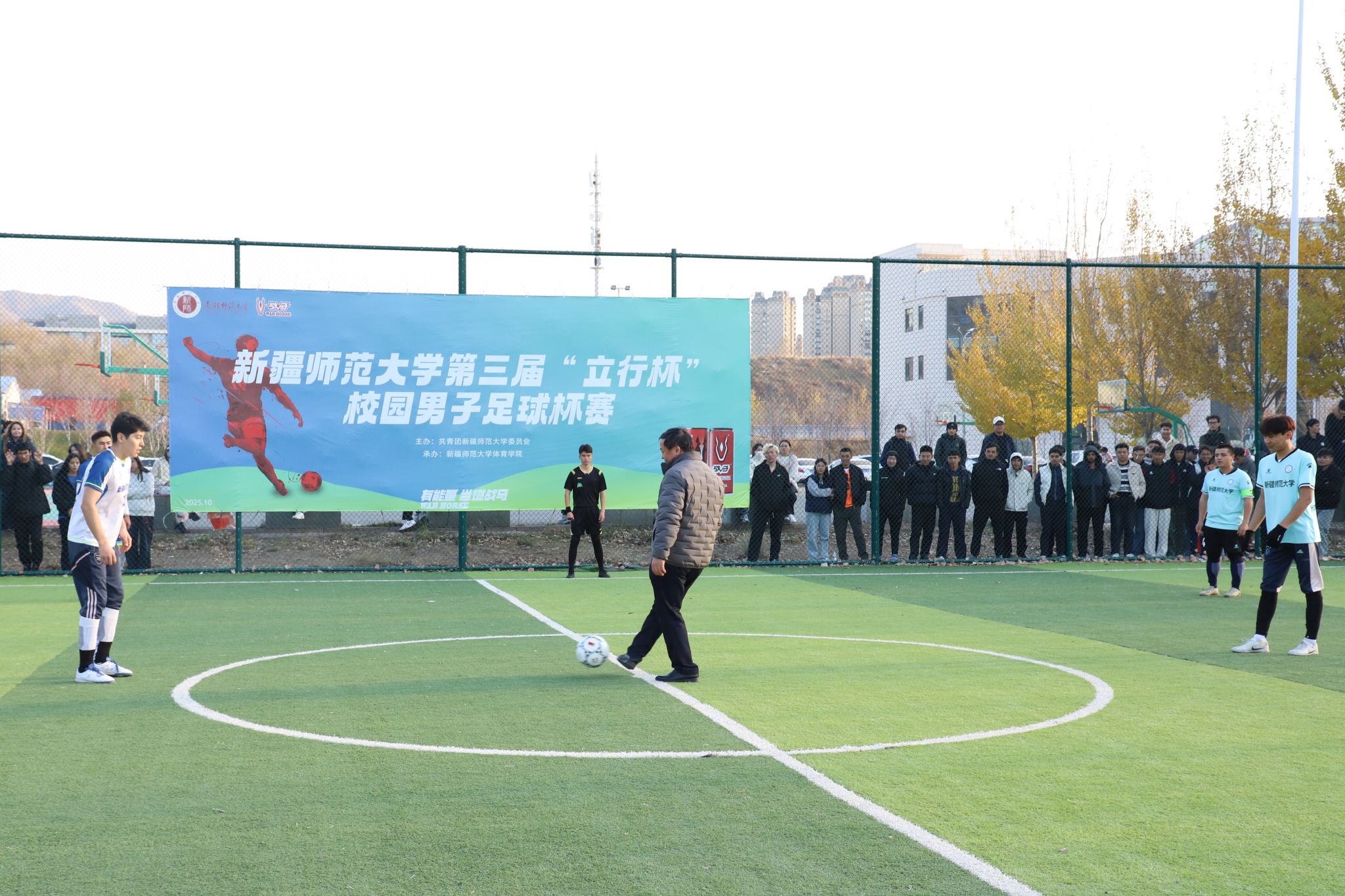 校党委书记蒋海军为第三届“立行杯”校园男子足球赛决赛开球