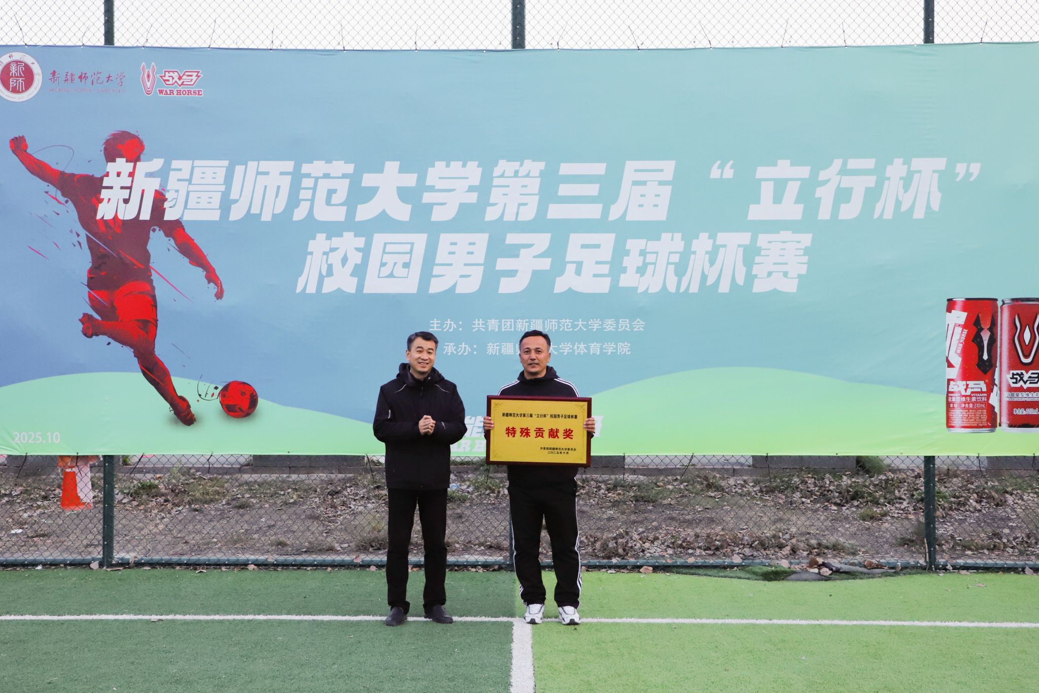 秋阳洒金,绿茵激荡。10月29日,我校第三届“立行杯”校园男子足球赛决赛暨颁奖典礼在温泉校区五人制足球场顺利举行。校党委书记蒋海军,校党委副书记刘俊,校党委常委、副校长、新疆天山职业技术大学党委书记关明参加活动,相关职能部门领导、各学院分管领导、学院团委书记、参赛运动员以及学生代表500余人现场观赛。