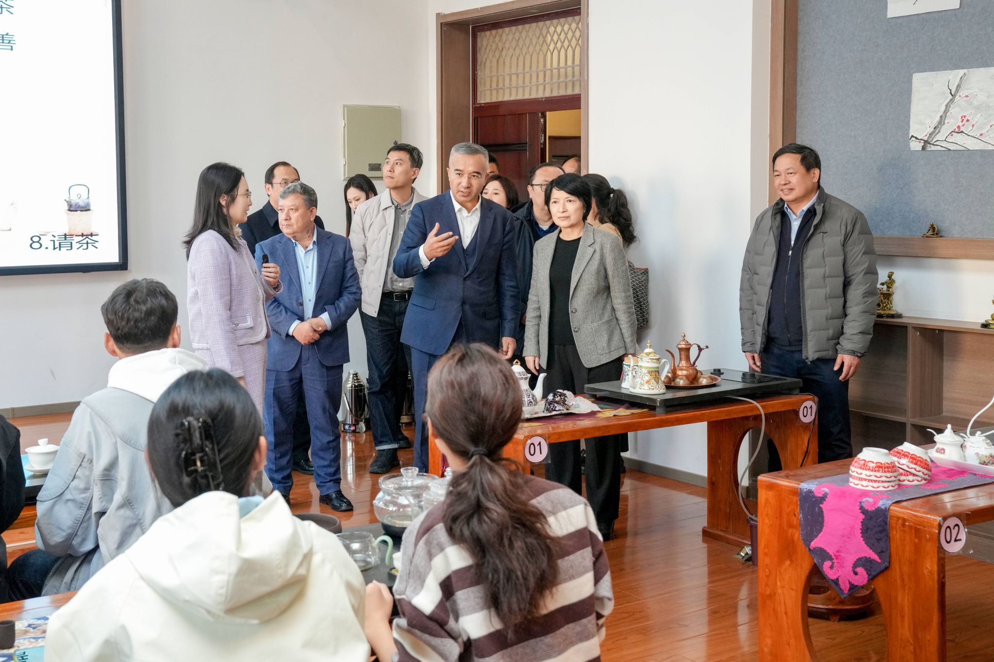 梅兵一行实地走访了我校铸牢中华民族共同体意识基地,沉浸式体验茶艺室、书法室、智慧报告厅等美育课堂,对基地立足边疆、深耕理论研究的创新实践给予高度肯定。她表示,基地为深化民族交往交流交融提供了重要平台,希望双方在课程资源开发、师资培训等方面深化合作,共同探索铸牢中华民族共同体意识教育的创新路径。