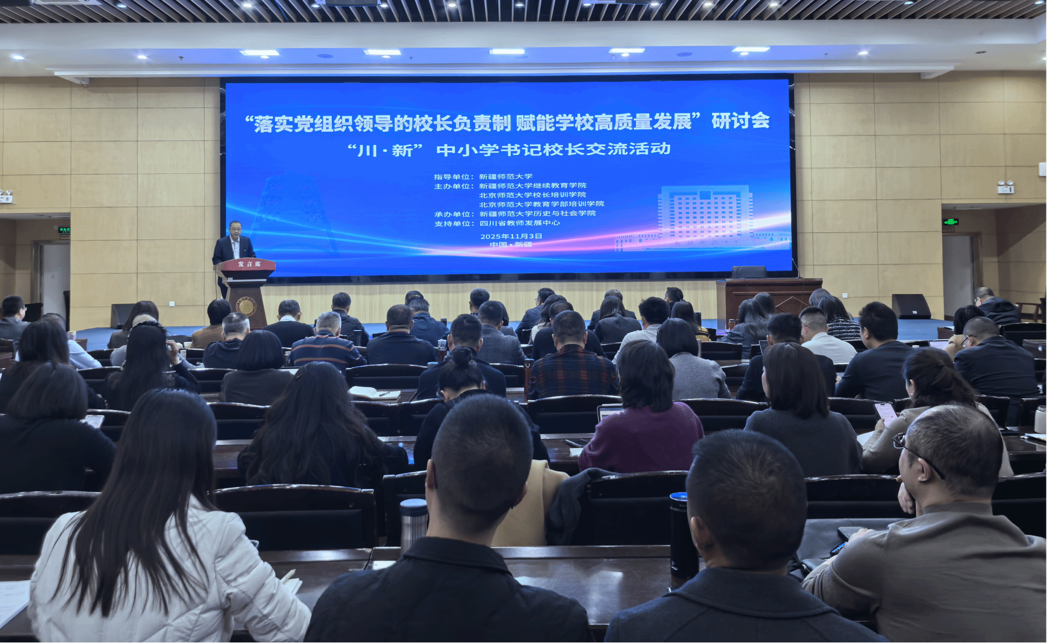 本次研讨会由我校继续教育学院、北京师范大学校长培训学院和北京师范大学教育学部培训学院主办,我校历史与社会学院承办。我校承训的“国培计划(2025)”——中小学党组织书记培训项目100名中小学党组织书记和80名四川省卓越校长研修项目的书记校长共同参加了活动。