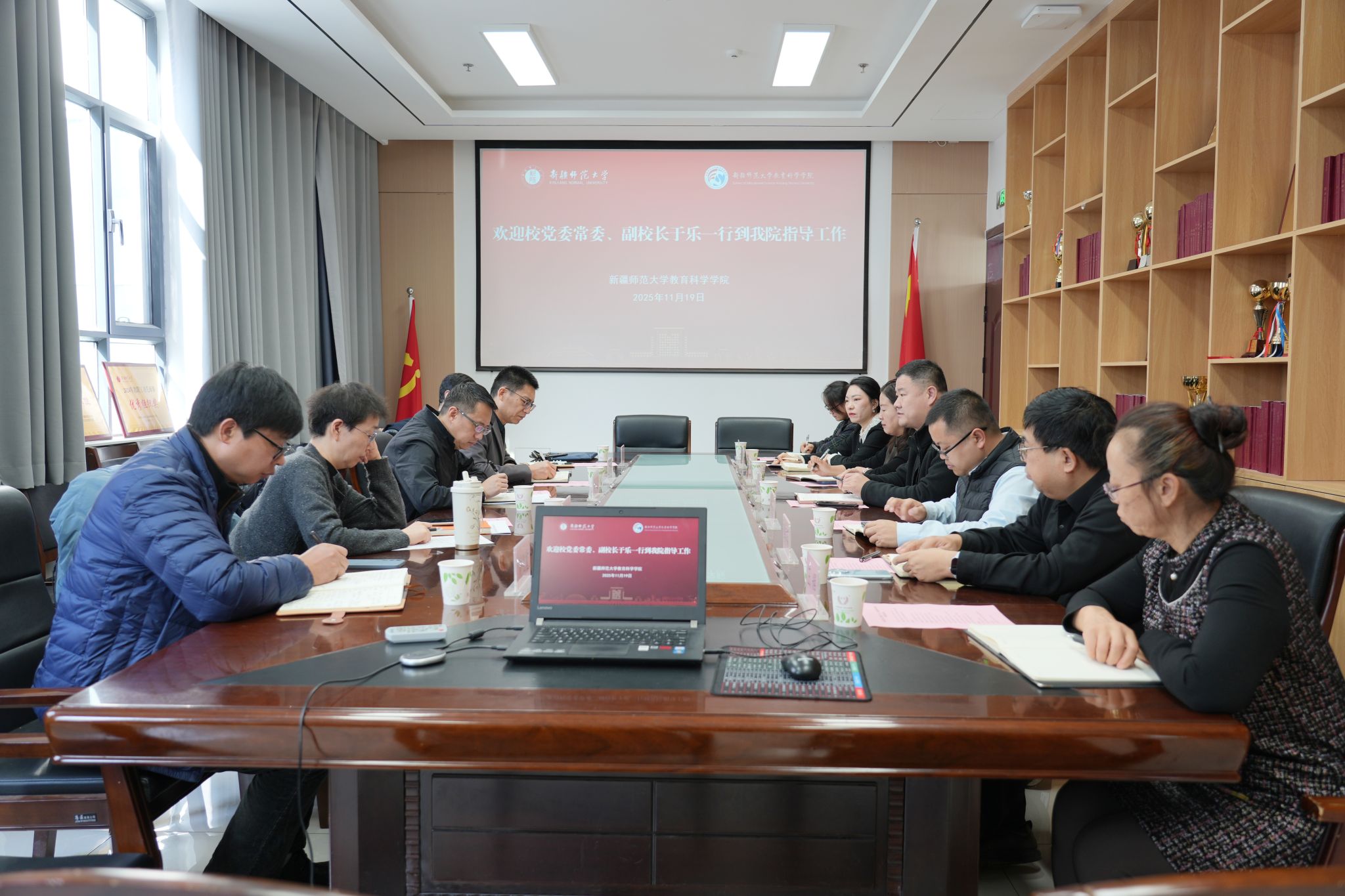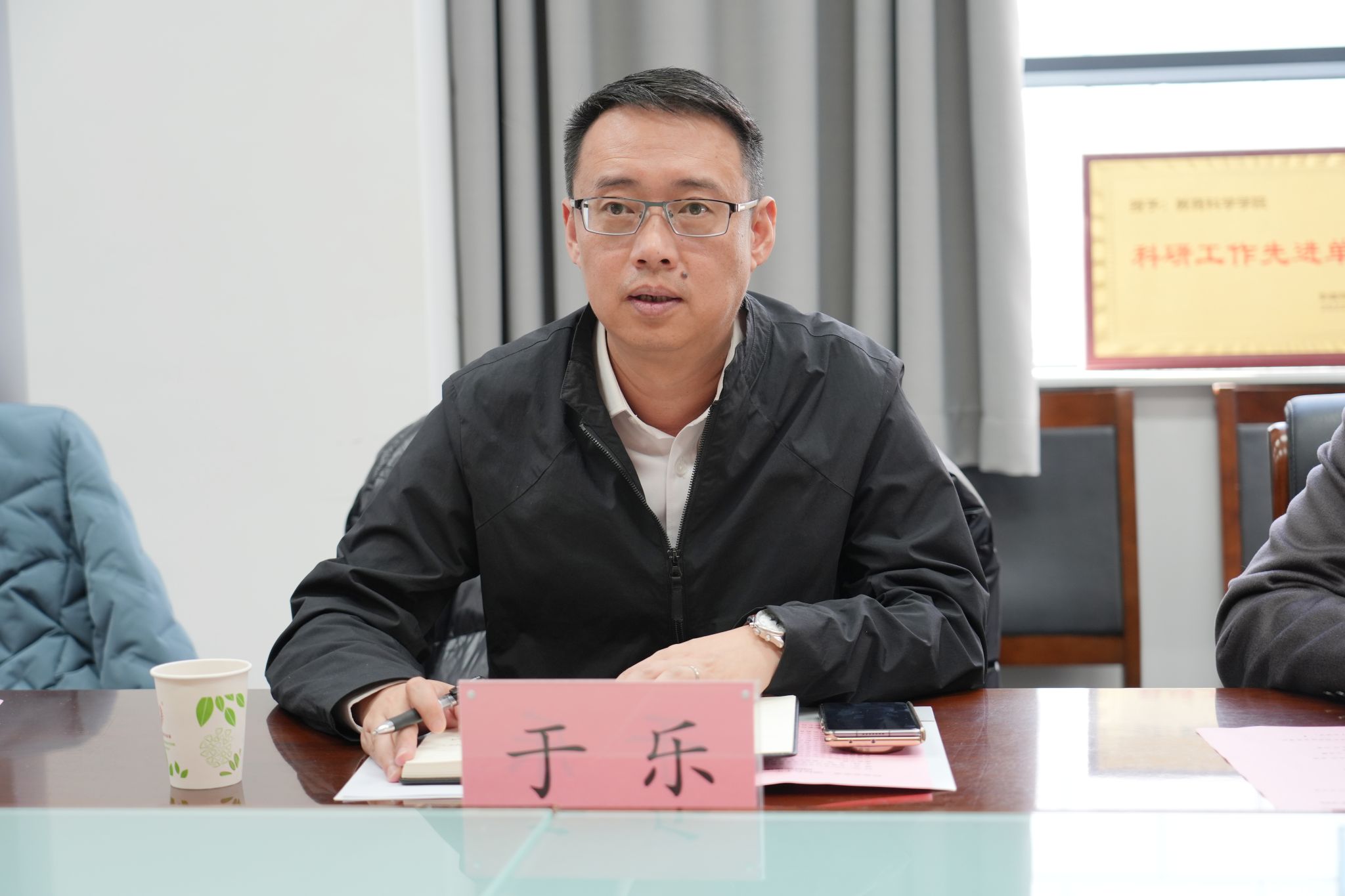 随后,于乐一行来到教育科学学院,与学院领导班子、中层干部及教师代表座谈。学院领导班子以《凝心聚力谋发展,追求卓越启新程》为题汇报了学院概况、学科建设、人才培养等情况及未来规划。于乐对学院扎实的工作基础和发展成效给予肯定,强调教育学科是师范院校立校之本,鼓励学院凝聚师生共识,持续加强平台建设与师资队伍建设,办强办出学科特色,推动各项工作再上新台阶。