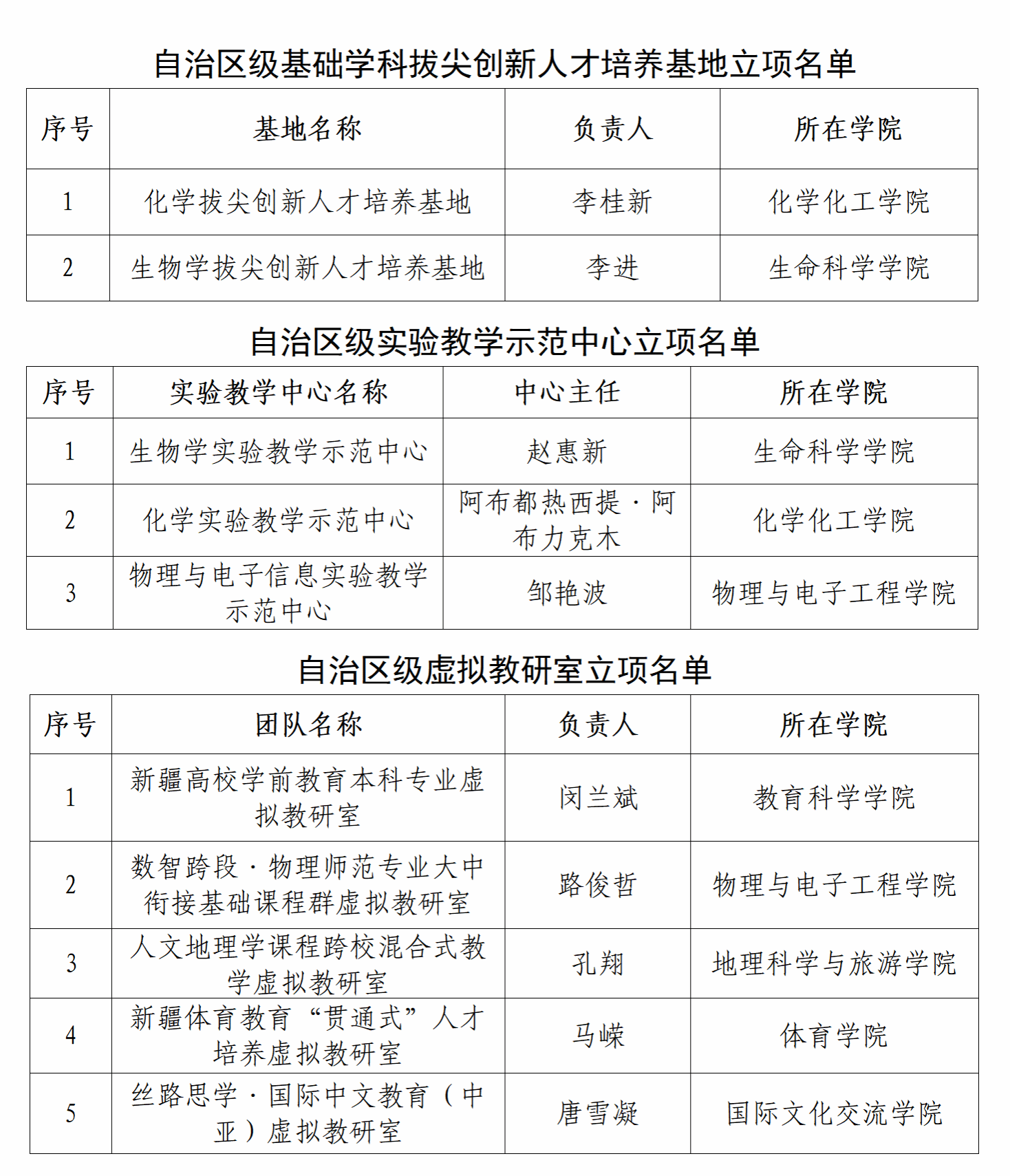 近日,自治区教育厅发布了《关于公布2025年自治区级专业特色学院等项目建设高校名单的通知》,我校共有10项建设项目获批立项,其中基础学科拔尖创新人才培养基地2个、实验教学示范中心3个、虚拟教研室5个,标志着我校在拔尖创新人才培养、实践教学改革与育人功能强化及新型基层教学组织建设上取得新成果。