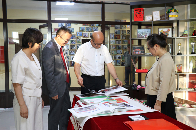 代表团访吉期间,吾满江·艾力一行还参访了我校合作建设的两所孔子学院并与孔子学院中方教师进行座谈,详细询问在吉工作生活情况,转达了学校党委对孔子学院教师们的关心和问候。