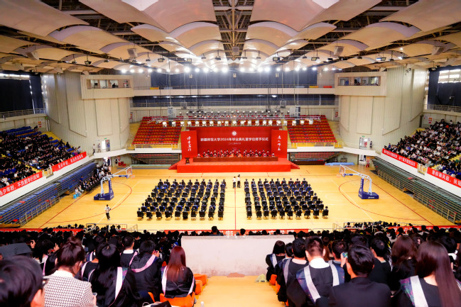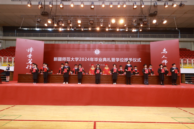 又是一年桃李芬芳,又是一年拔穗启航。6月5日下午,新疆师范大学2024年毕业典礼暨学位授予仪式在昆仑校区体育馆隆重举行。全体在家校领导出席典礼,学校学位委员会委员,相关职能部门领导,各学院领导、硕博导师代表、辅导员和学业班主任代表及2024届毕业生代表、家长代表现场观礼。典礼由校党委副书记、校长吾满江·艾力主持。