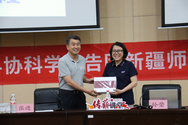 “传薪讲堂”第二讲同步在昆仑校区国教楼三楼报告厅进行,由中国科学院科普报告团成员、中国老科协报告团成员、中国科学院高级工程师孙莹教授带来《致敬“两弹一星”功勋 弘扬伟大精神》主题讲座。新疆科协科技服务中心原主任、新疆老科技工作者协会秘书长程远以及昆仑校区各学院辅导员和学生代表现场聆听,讲座由学生工作部(处)处长张进主持。孙莹教授在讲座中,通过“三钱值万金”“失踪的人”和“比生命更重要的是”三个故事为线索,讲述了科学家们的伟大精神,传递了科学家们对祖国的深厚感情和对科学事业的执着追求。她的讲解深情而生动,令在场师生感受到了科学家们的崇高精神和高尚品质,更加坚定了为国家科技进步和繁荣发展贡献力量的信念。