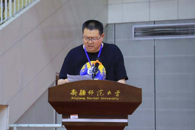 乌鲁木齐市棋类协会会长蔡啸镝宣读团体项目获奖名单