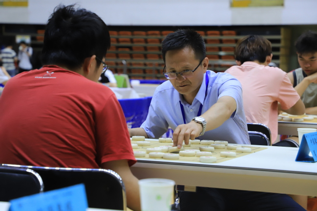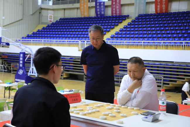 校党委副书记刘俊,体育学院党委副书记、院长马嵘开棋