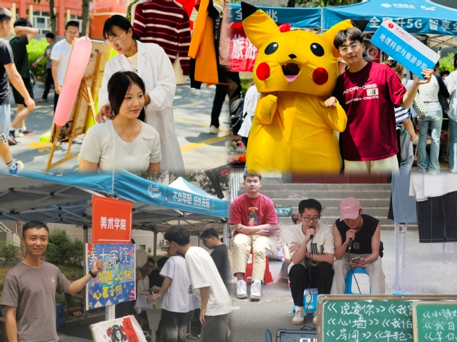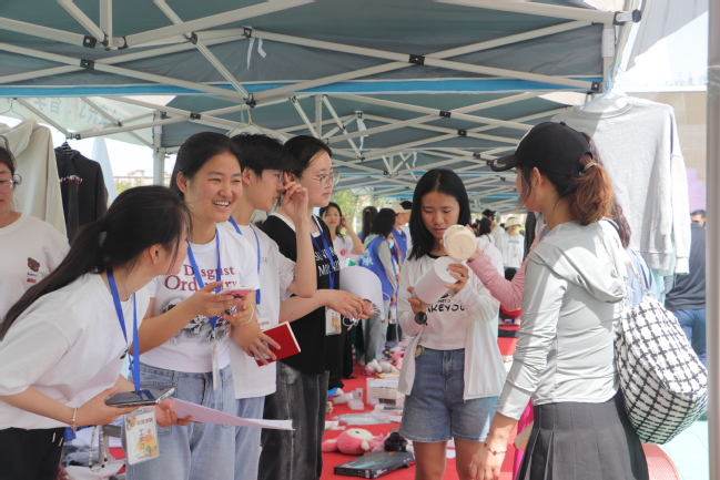 活动中,马克思主义学院设置买赠活动,商学院开启专业售卖,政法学院和历史与社会学院上岸学子捐赠考研资料,教育科学学院现场书写书签,中国语言文学学院准备精美赠品,心理学院爱心义卖的同时普及心理健康知识,外国语学院发挥专业优势进行双语义卖,生命科学学院现场为学生创业团队做宣传,国际文化交流学院、数学科学学院、物理与电子工程学院、化学化工学院“店”前门庭若市,计算机科学技术学院提供抽盲盒体验,地理科学与旅游学院开展2元趣味投球,体育学院提供肩颈按摩,音乐学院现场点歌驻唱,美术学院挥墨书法……诸多富有趣味的套圈、知识问答等创意玩法,令各摊位前人头攒动、热闹非凡。师生购物时不仅收获了心仪之物,还收获了与众不同的新师市集文化体验。