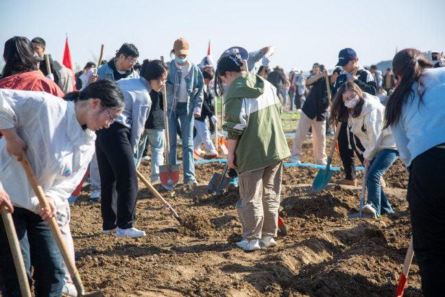 为全面贯彻党的教育方针,大力加强新时代劳动教育,教育引导广大学生在努力学习的同时养成劳动观念、劳动意识、劳动习惯,以劳动实践的方式迎接“五一”国际劳动节,5月1日上午,我校学生工作部(处)组织400余名师生在温泉校区春晖山举行了“春晖沃土耘耕新章”第四届“新师春晖农场”种植活动开园仪式。校党委书记葛国、校党委副书记刘俊,以及学生工作部(处)、校团委、后勤服务中心、保卫处等职能部门和温泉校区11个学院的领导、辅导员和师生代表参加仪式。
