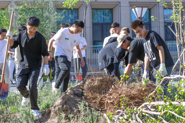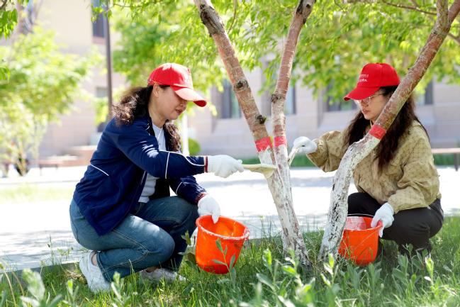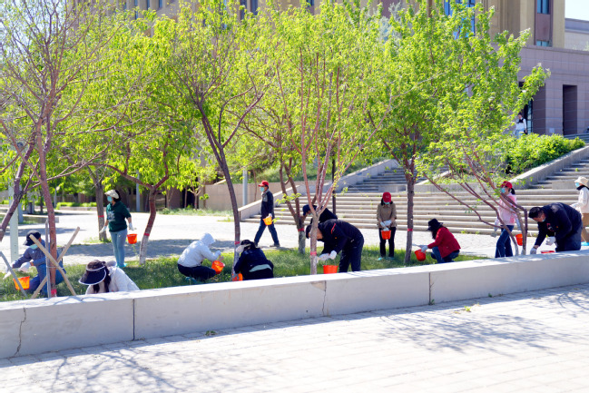 为深入贯彻落实习近平生态文明思想,贯彻落实自治区生态环境保护暨荒漠化综合防治大会会议精神,深入开展生态文明教育,积极践行“绿水青山就是金山银山”理念,5月8日,我校开展2024年春季校园植树绿化活动。校党委书记葛国,校党委副书记、校长吾满江·艾力,校党委副书记刘俊,校党委常委、副校长帕提曼·吐尔逊,校党委常委、副校长季荣,校党委常委、纪委书记蒋方珍,校党委常委、副校长陈彤以及党委办公室、学校办公室、党委宣传部、学生工作部(处)、教务处、校团委、后勤服务中心等职能部门和温泉校区各学院师生代表参加活动。