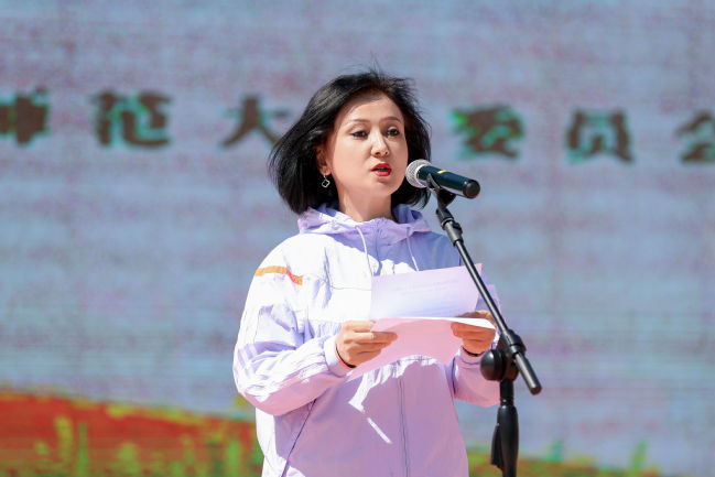 帕提曼·吐尔逊在启动仪式上致辞,她表示全校上下要深入贯彻落实习近平生态文明思想,加强宣传教育,将植树绿化活动作为校园文化建设的一部分,持之以恒地传承下去。她鼓励全校师生积极参与生态环境建设,为建设美丽校园再添新绿,为建设美丽新疆再立新功。