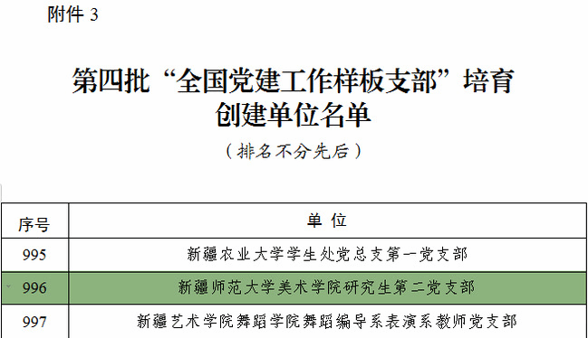 近日,根据教育部办公厅发布《关于公布第四批全国党建工作示范高校、标杆院系、样板支部培育创建单位名单的通知》,我校美术学院研究生第二党支部成功入选“全国党建工作样板支部”培育创建单位。