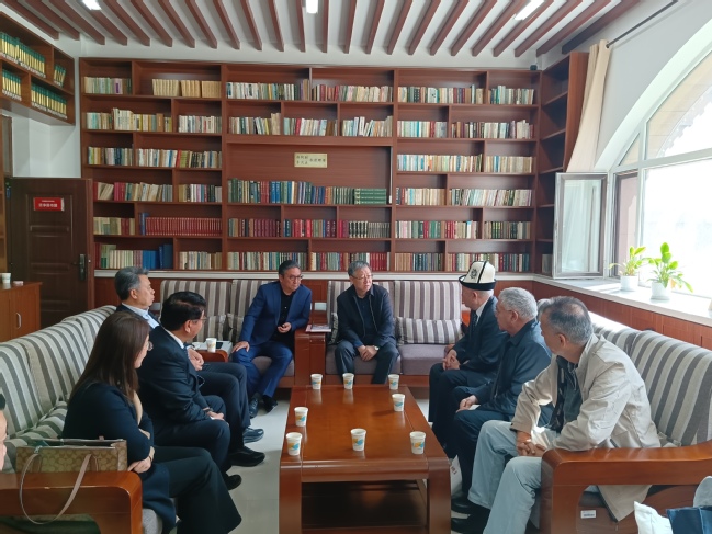 论坛正式开始前,校党委书记葛国会见了部分参加此次论坛的领导与学者,介绍了我校《玛纳斯》研究中心相关情况。他表示,未来我校将持续加强对以《玛纳斯》为代表的新疆说唱类“非遗”项目的保护、传承和研究工作,深化与克州政府的协同合作,通过更多切实有效的举措使中国非物质文化遗产和中华优秀传统文化在学科建设、平台建设、人才培养、服务社会上发挥更大作用。