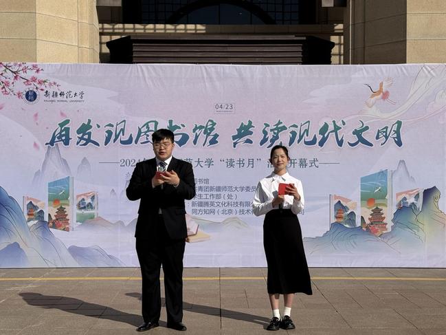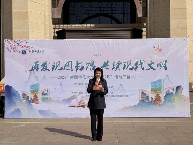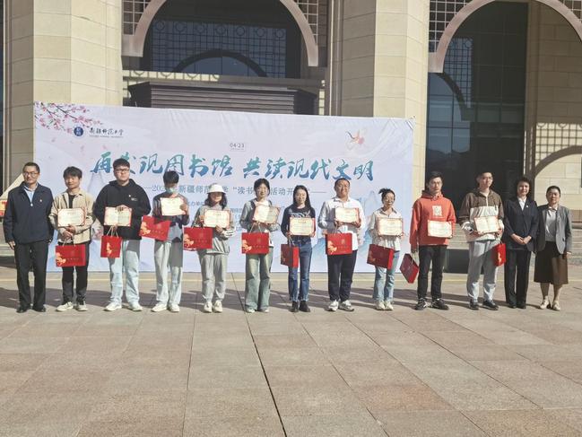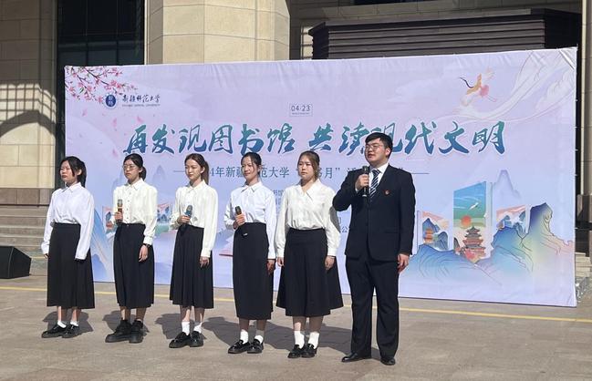 4月23日上午,由学校图书馆、校团委、学生工作部(处)共同主办的“再发现图书馆共读现代文明”读书月系列活动开幕式在新疆师范大学温泉图书馆举行。校党委常委、副校长帕力旦·吐尔逊,校图书馆党总支书记马晓利、图书馆馆长包瑞、学生工作部(处)副处长姜云琴,以及图书馆各部门代表、获奖学生及现场读者等五十余人参加了开幕式。