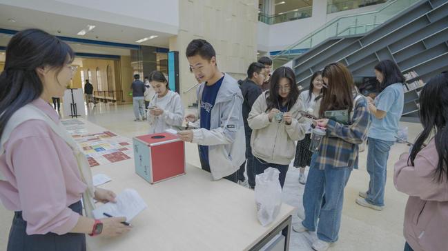 开幕式后,图书馆内举办了丰富多彩的主题活动。“读名句猜名著”、手工绘制帆布包、“制作诗词书签”线下活动同时开启,同学们纷纷走进图书馆二楼大厅参与活动,现场氛围热烈而浓郁。