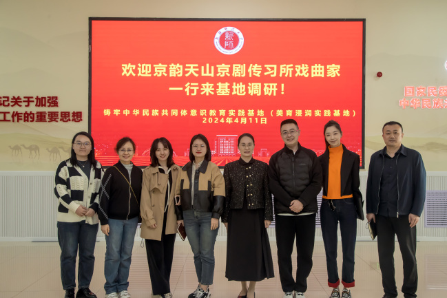 4月11日下午,京韵天山京剧传习所戏曲家王戈(国家二级演员)等一行四人来到我校铸牢中华民族共同体意识教育实践基地(美育浸润实践基地),共同探讨基地发展,深化校企合作,进一步推进铸牢中华民族共同体意识教育走实走深、见行见效,有力推动中华优秀传统文化的传承与创新。