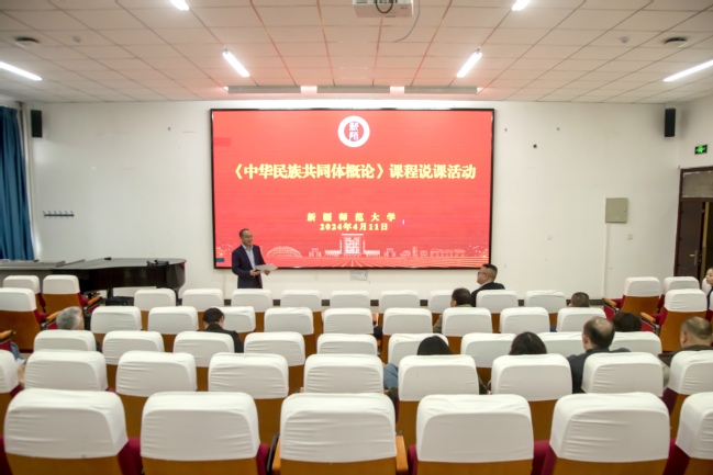 4月11日,我校在笃学楼120智慧教室开展《中华民族共同体概论》课程说课活动,校党委常委、副校长陈彤出席活动并致辞。活动由统战部副部长张全生主持,课程筹备组20余名教师参加。