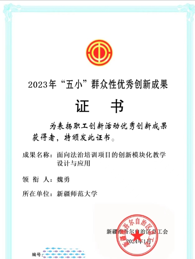 近日,自治区总工会公布了《关于通报表扬2023年职工创新活动优秀创新成果的决定》,我校马克思主义学院教师罗志佳、教育科学学院教师王春晖、政法学院教师魏勇获奖。
