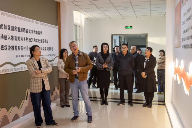 王敏一行先后实地走访了我校国家语言文字推广基地和铸牢中华民族共同体意识教育实践基地(美育浸润实践基地),全面了解了我校语言文字工作开展情况,考察了我校语言文字工作成果,并就国家通用语言文字推广普及与辐射、国家通用语言文字推广基地建设等内容进行现场交流。