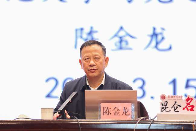 随后,陈金龙教授以《习近平文化思想的总体把握及其原创性贡献》为题,全面系统阐释了习近平文化思想。他表示,习近平文化思想是对新时代党领导文化建设实践经验的理论总结,也是对中国特色社会主义文化建设规律的系统性总结,形成了体系化、学理化的理论框架。内涵丰富、论述深刻,涵盖了中国特色社会主义的文化纲领、文化立场、文化道路、文化根基、文化格局、文化使命等方面的重要论述。通过陈金龙教授的报告,进一步加深了我校师生对习近平文化思想的理解和认识。