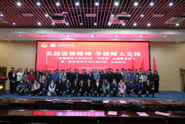 在第61个“学雷锋纪念日”来临之际,为深入学习贯彻落实党的二十大精神,贯彻落实习近平总书记对深入开展学雷锋活动的重要指示精神,加强我校志愿服务保障和支持,不断发展壮大学雷锋志愿服务队伍,3月4日下午,我校在昆仑校区举办“弘扬雷锋精神 争做师大先锋”——新疆师范大学2024年“学雷锋”志愿服务活动暨“新师朋辈学习互助”计划启动仪式。校党委副书记刘俊、自治区团委大学生志愿服务西部计划办公室主任刘恺、学校学生工作部(处)处长张进、校团委书记陆娇、师大学府社区党总支书记赵岚出席活动,各学院党委副书记、分团委书记及志愿者代表参加仪式。
