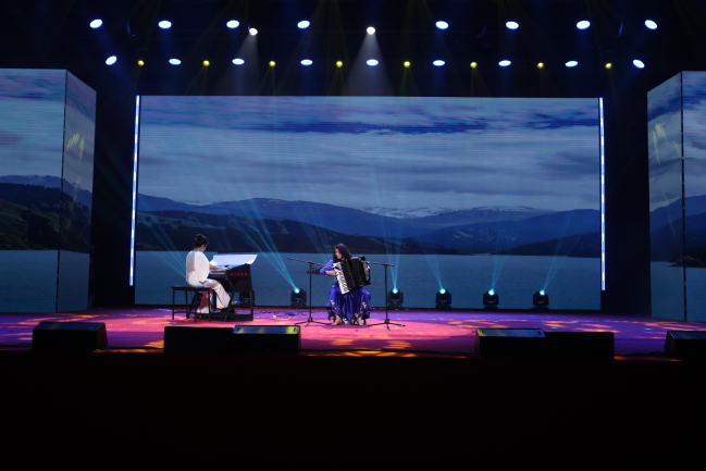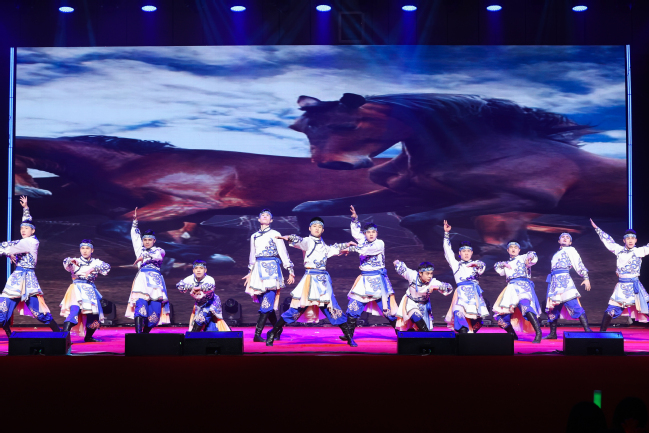 文艺晚会由我校音乐学院140余名师生编演的16个节目组成。在音乐学院“天山百灵”合唱团演唱《再别康桥》《向往》的热烈氛围中,晚会正式拉开帷幕。随着铿锵有力的节奏和高亢激昂的音乐,演员们用饱满的热情和极富张力的肢体语言表演了塔吉克族舞蹈《帕米尔之情》、蒙古族舞蹈《骏影追风》、哈萨克族舞蹈《牧送》《黑走马》、维吾尔族舞蹈《朱拉》,生动展现了新疆各民族勤劳、勇敢、淳朴、豪爽的优秀品质,演绎出了新时代新疆各族人民和谐幸福生活的美好图景。歌曲《灯火里的中国》诉说着在奔流不息的时间里,伟大祖国的复兴之路和国泰民安的盛世今朝。歌曲《巴郎仔》《七月的草原》《山海》《阿哥的白牡丹》《幸福中国一起走》,以独特的民族文化风情交织现代流行音乐元素,让传统文化艺术瑰宝与现代流行文化共同焕发出璀璨夺目的光彩,明朗的曲风与欢快的节奏令现场观众耳目一新。入选第十三届桃李杯全国青少年舞蹈教育教学成果展示活动的我校原创舞蹈《足球小子·冠军梦》,则通过维吾尔族舞蹈元素,充分表现新疆少年儿童为追逐足球梦想,执着前行、永不后退的精神品质。器乐协奏《乌鲁木齐的天空》、器乐联奏《昆仑之春》《喜洋洋》《帕米尔,我的家乡多么美》《好日子》《金蛇狂舞》,通过铿锵有力、震撼人心的现场演奏,抒发了各民族休戚与共、亲如一家、齐心协力共建美好家园的浓烈情感。晚会精彩纷呈,高潮迭起,赢得了现场观众持久而热烈的掌声。