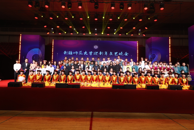 12月22日晚,新疆师范大学迎新年文艺晚会在昆仑校区体育馆隆重举行。全体在家校领导出席晚会,我校援疆干部,职能教辅部门、各学院领导及教师代表,2023年新入职教职工,各学院辅导员及学生代表近3000人现场观看演出。三校区师生通过抖音平台、新疆师范大学融媒体中心影像数字化平台同步观看晚会视频及图片直播。