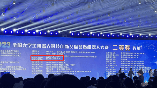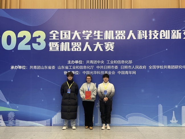 12月17日至19日,2023年全国大学生机器人科技创新交流营暨机器人大赛决赛在山东省日照市举办。经过激烈角逐,我校计算机科学技术学院朱广贺、樊小超、张雪三位教师指导的计算机科学与技术20-2班史文昊、金山、卜艾妮排·海比尔、牛树浩、李建伟及2021级计算机技术专业研究生纪小敏参赛作品《阿尔猫的智慧课堂》荣获全国总决赛二等奖。